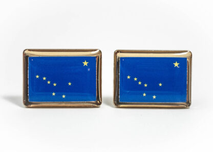 These are cufflinks of the flag of Alaska. These are great for anyone who is from Alaska, has family or friends from Alaska or has visited and fallen in love with Alaska. I made these with my own hands and hope that you enjoy them. The flag is the star constellation Ursa Major (the Big Dipper). The flag is enamel and has a gloss coat on top for shine and protection. The bordering is gold. The gold and the glossy finish make it shiny and impressive.