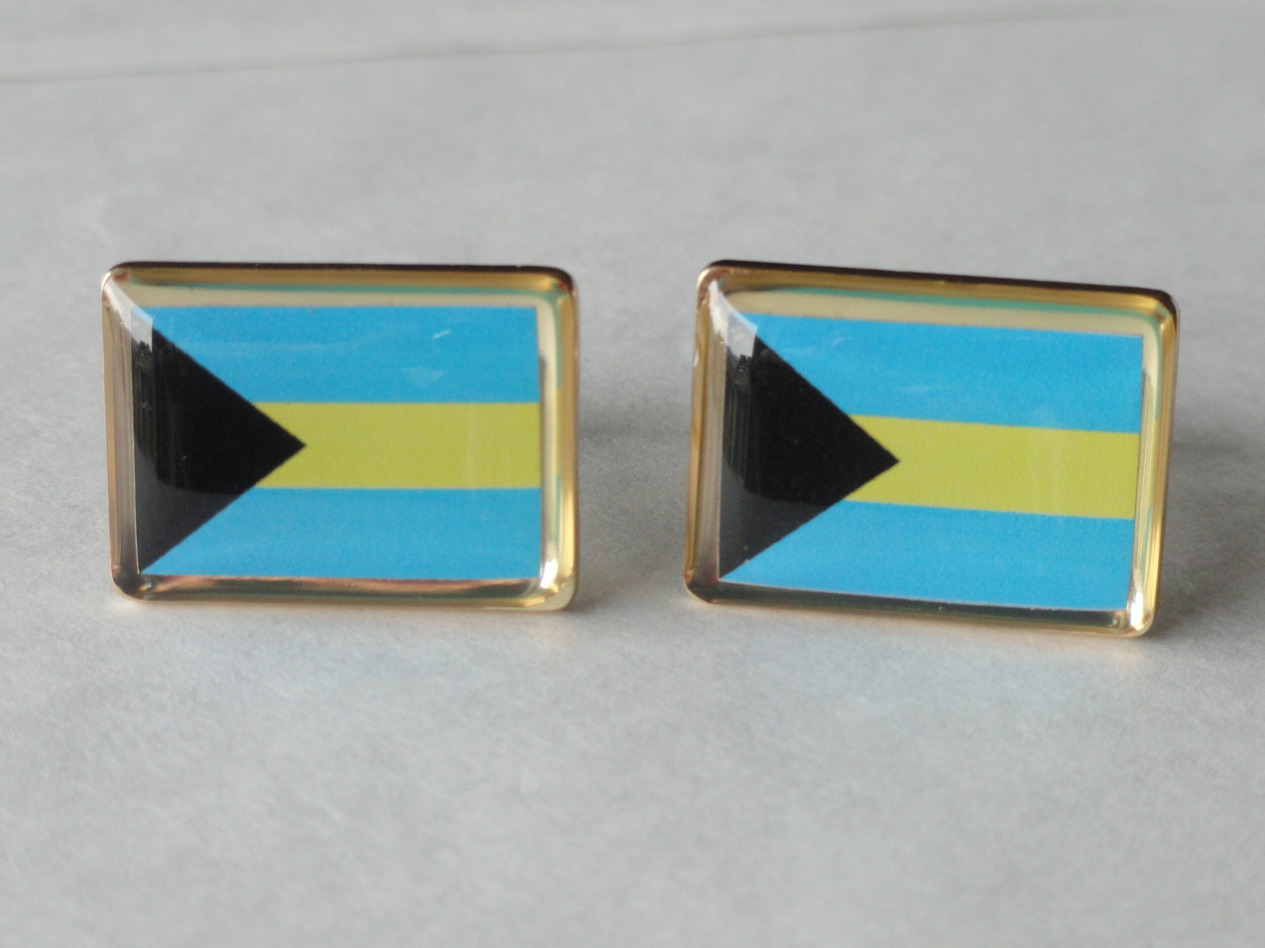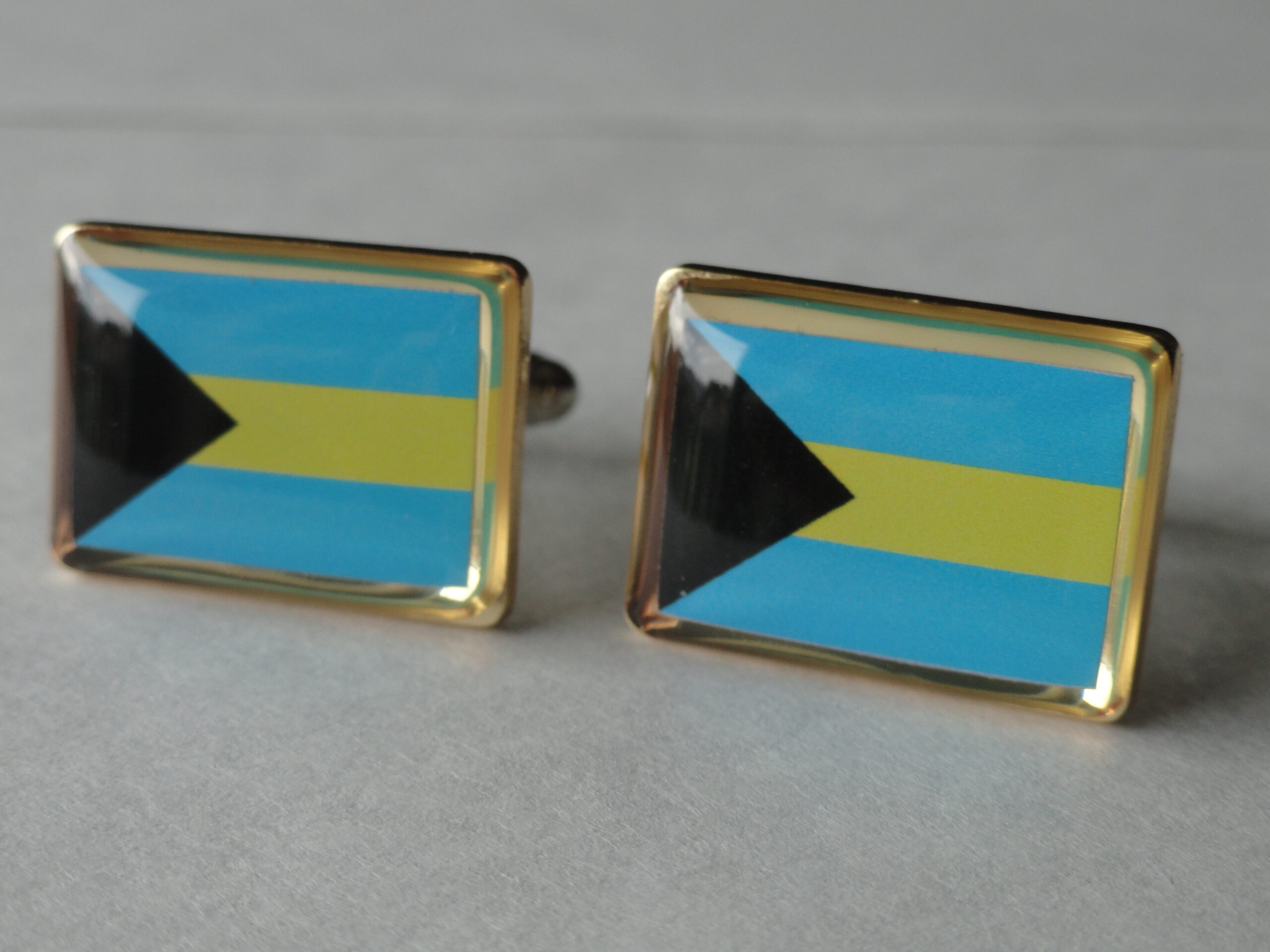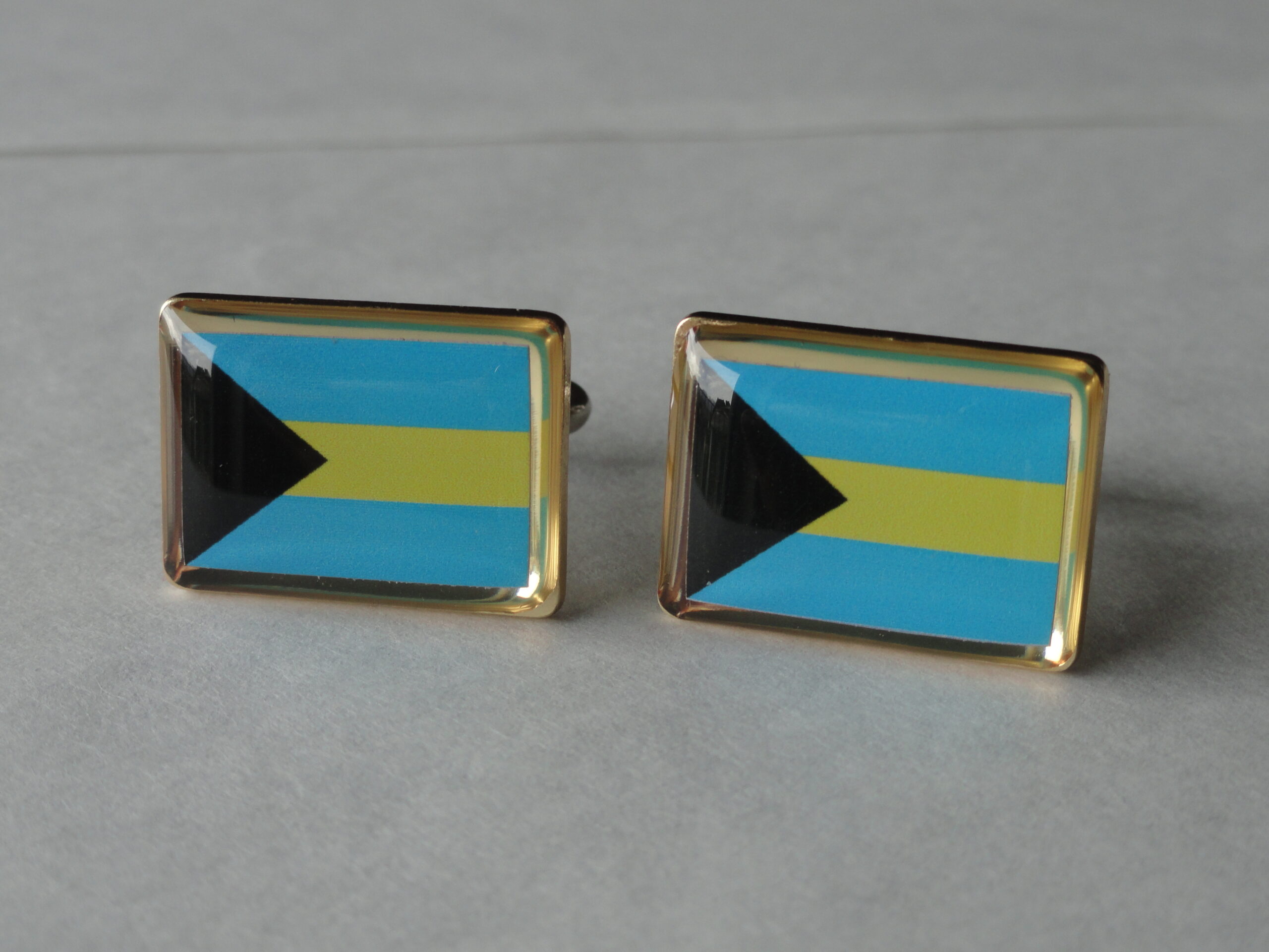 These are cufflinks of the flag of the Bahamas. These are great for anyone who is from the Bahamas, has family or friends from the Bahamas or just plain loves them some Bahamas. I made these with my own hands and hope that you enjoy them. These are great and I love to get comments on them and all my other pairs when I wear them. These are made out of enameled steel are are high quality.