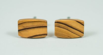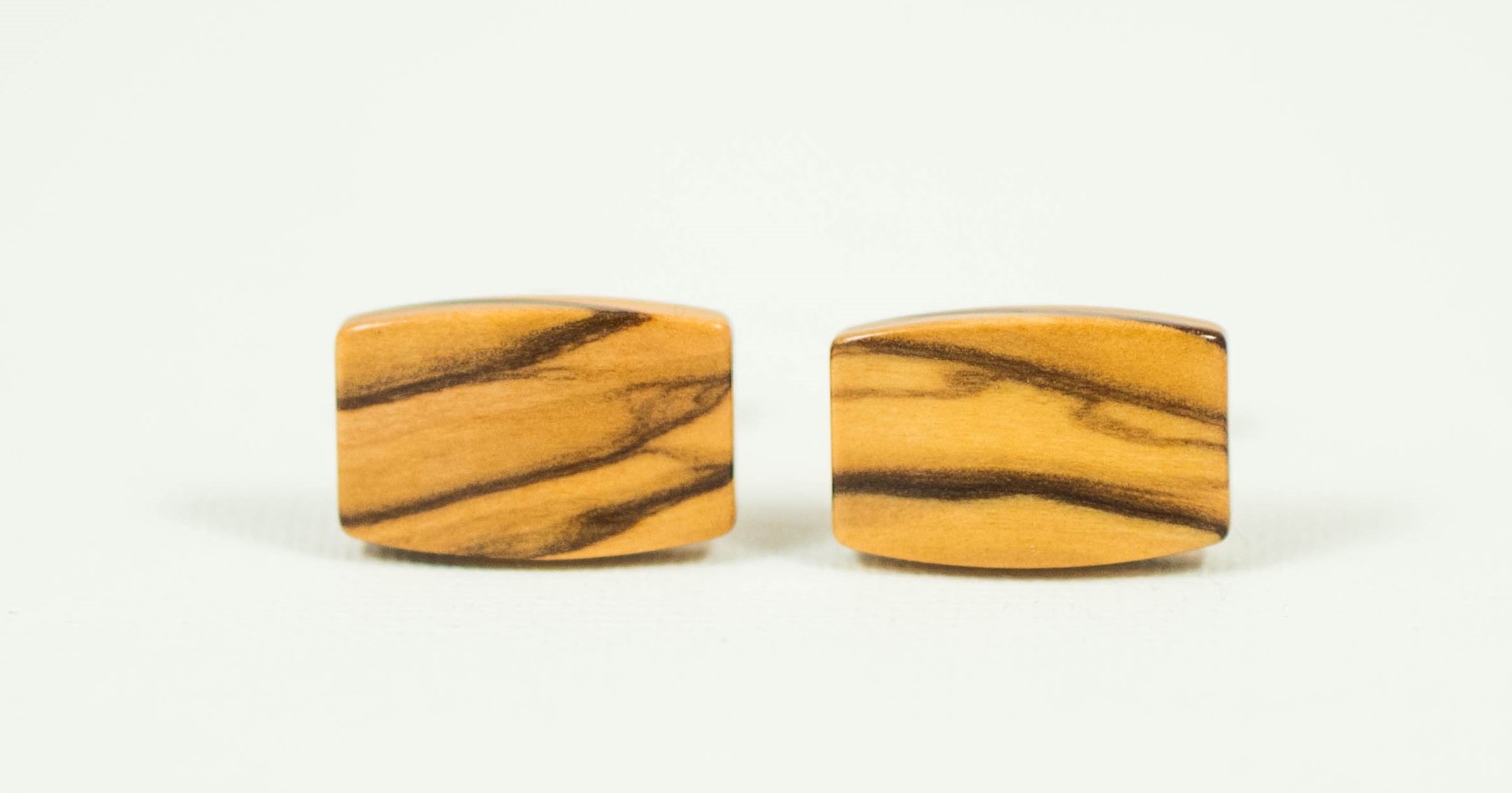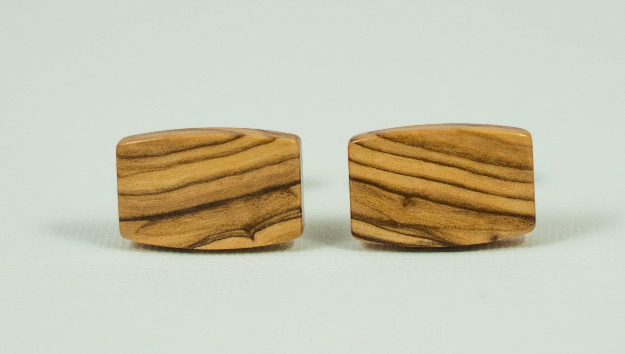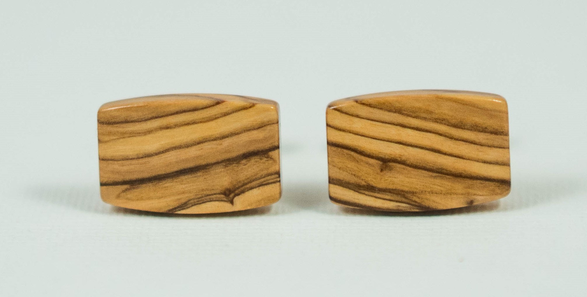 These cufflinks are made of highly polished wood. The grain and features are captured very well. Bethlehem olive is a beautifully grained wood. This lumber is made from the annual prunings of the olive groves around Bethlehem. I love wearing these ones because they look great without being over the top or gaudy.