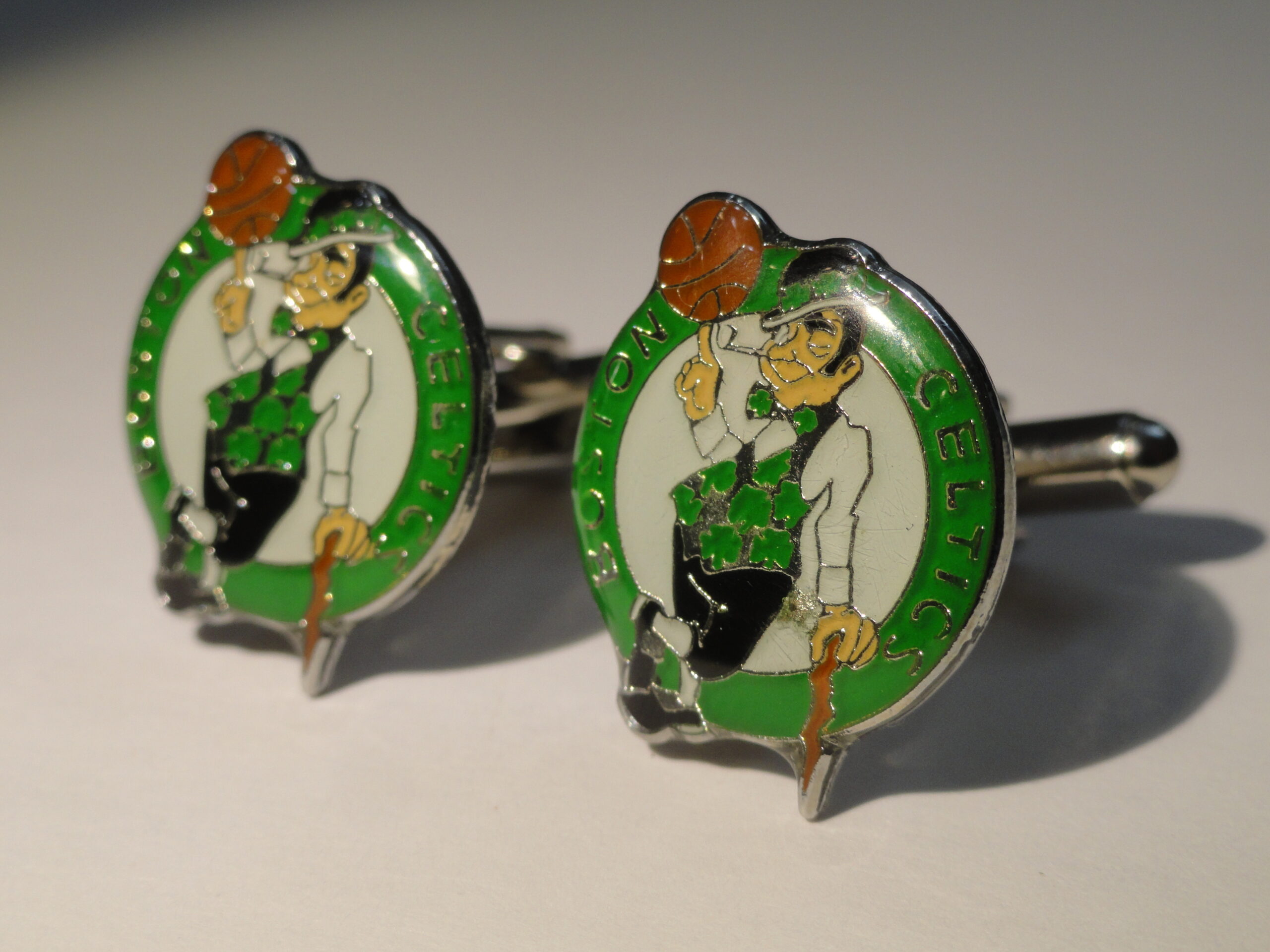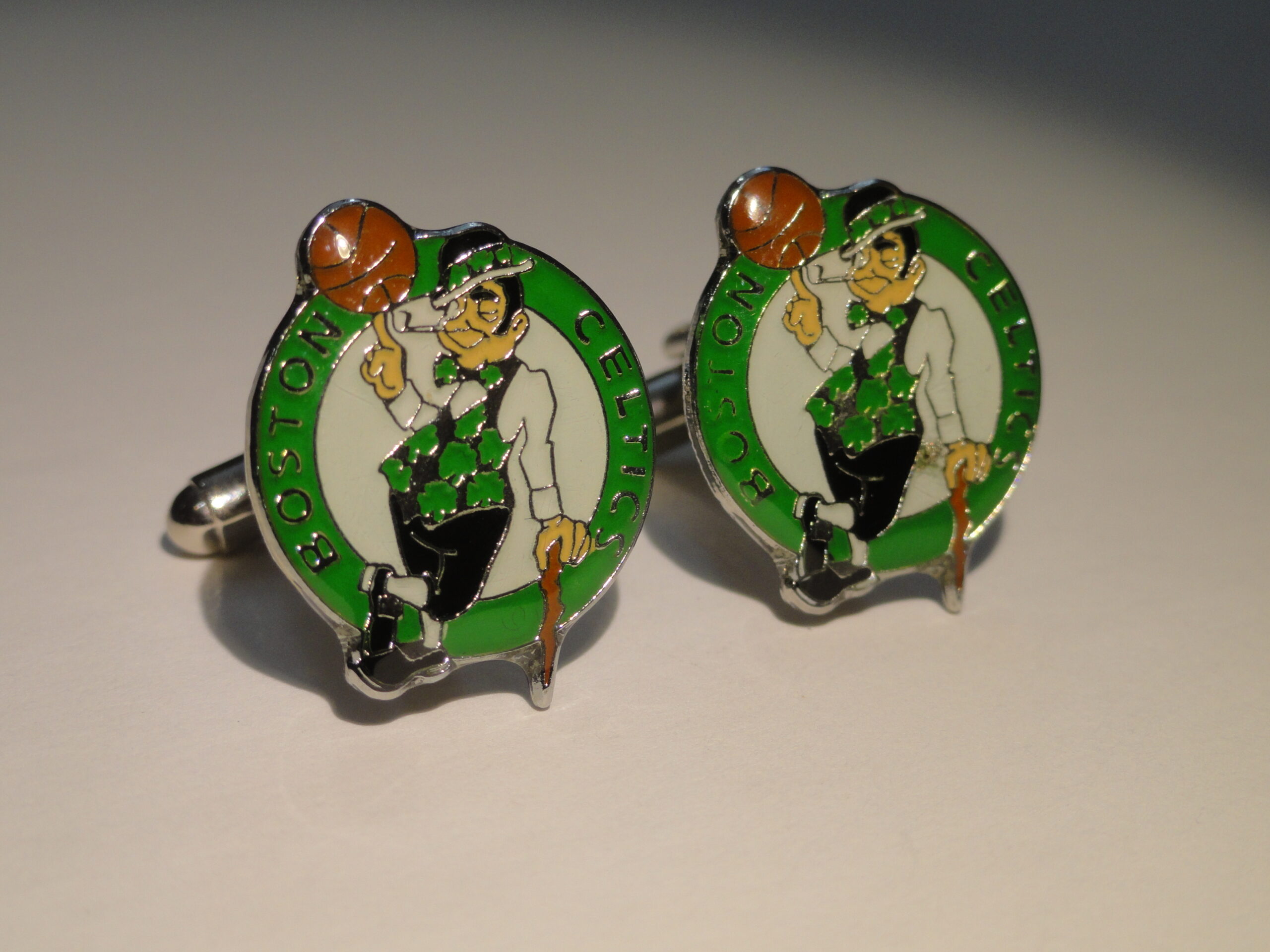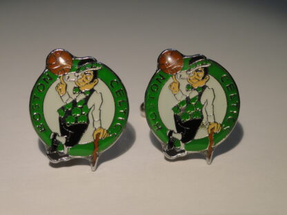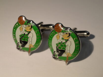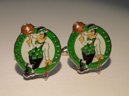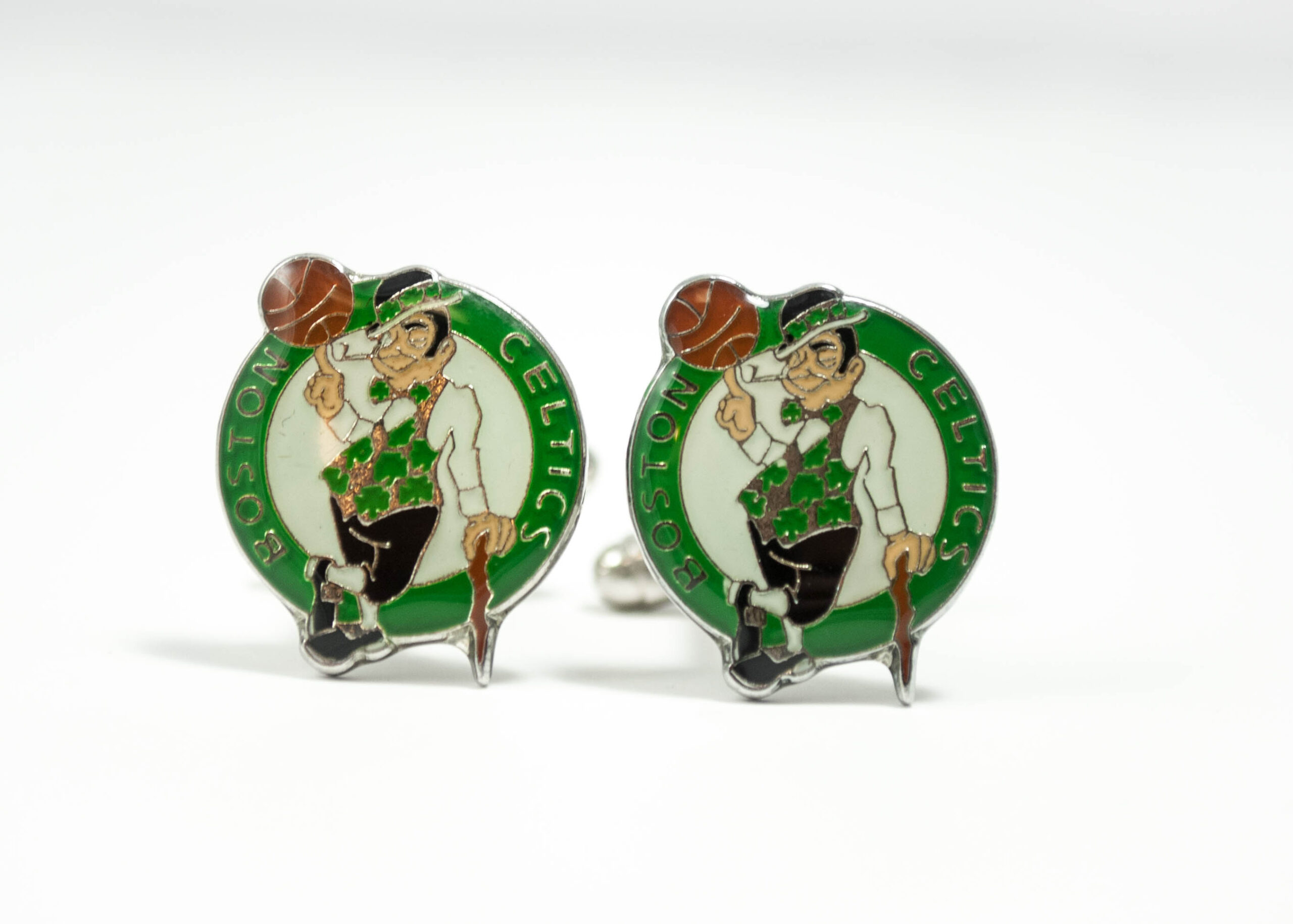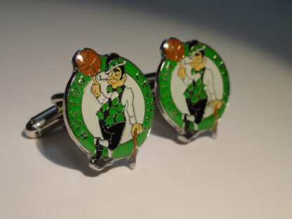 Cufflinks of the logo of the Boston Celtics, basically one of the most famous teams in the NBA. They are past winners of the National Basketball Association Finals and the Larry O’Brien Trophy. This pair is perfect for all you Celtics fans, or for anyone who just loves basketball! Maybe a Celtic is your favorite player? Show your support by wearing this pair to your next event, next basketball game, or just at work!