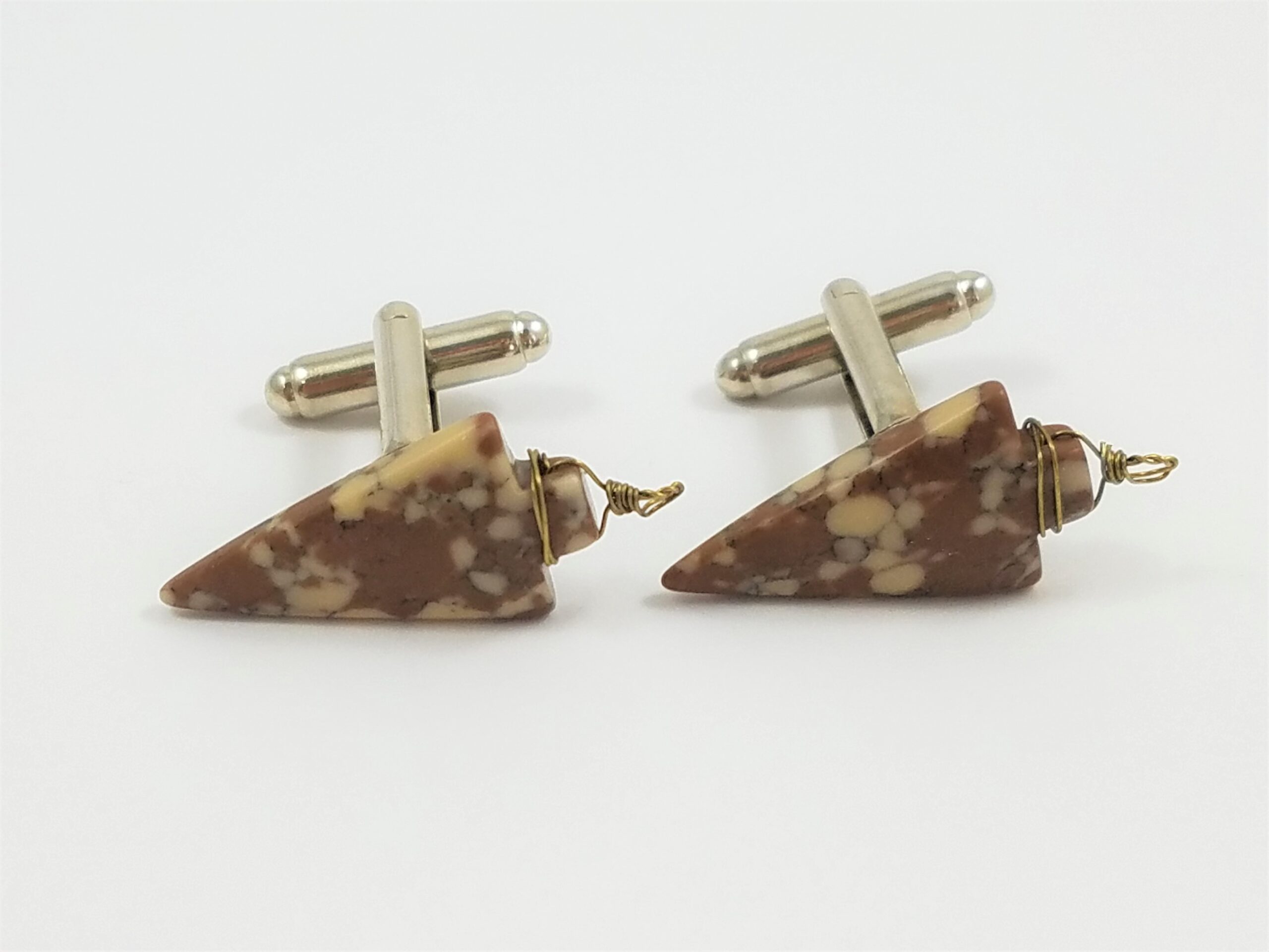 These are hand-made cufflinks made from agate arrowheads (not a thousand years old though). They have a beautifully soft, brown color to them. They are a little less than an inch long. They would look great and set you apart in any social setting. They would probably make you a lot manlier too, which is something you desperately need.