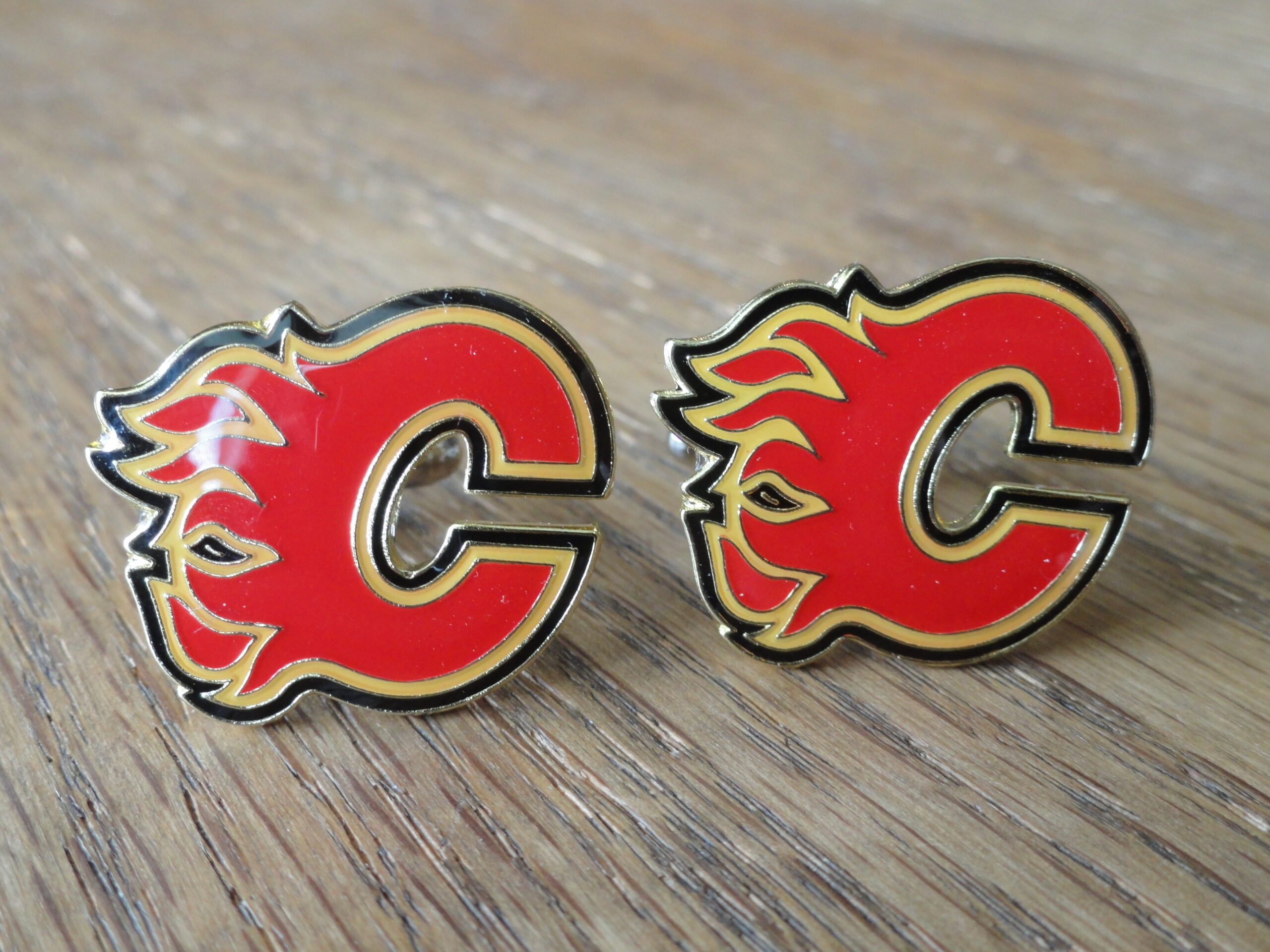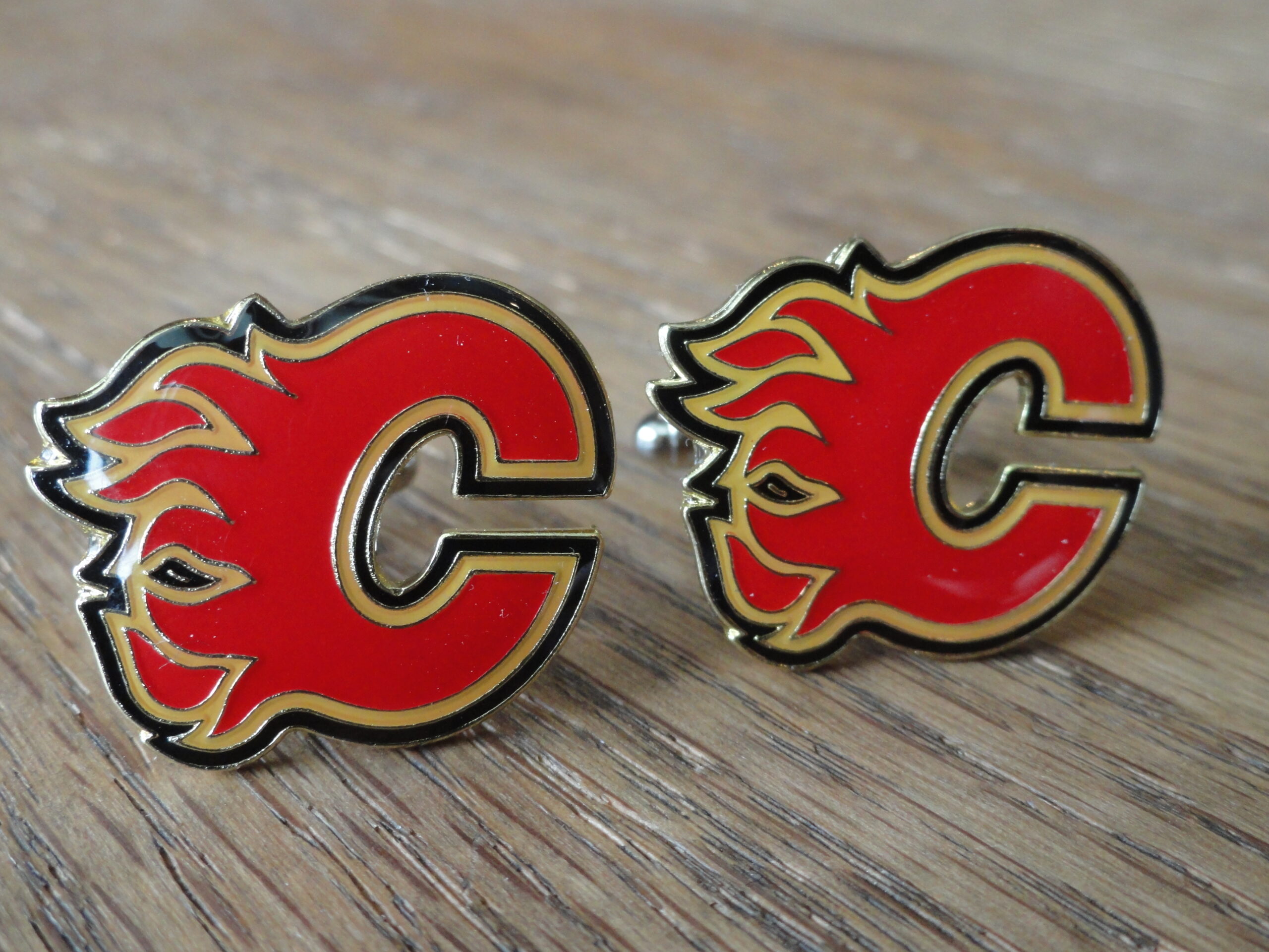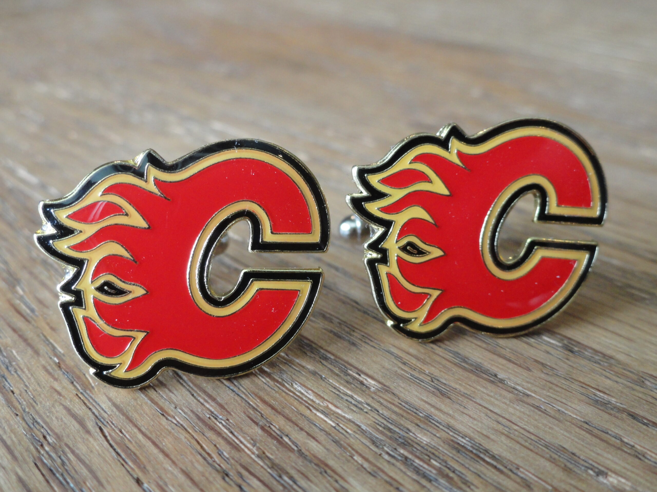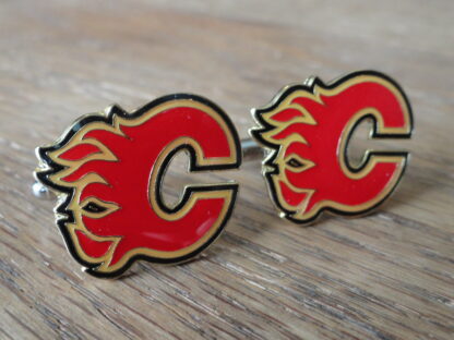 Cufflinks made of the logo of the Calgary Flames hockey team. Show your pride in your team by wearing this beautiful set. The logo is created using high-gloss enamel on stainless steel. The quality is excellent and will last you a long time. This pair is perfect for formal and less formal settings, or just something fun to wear at the office that will set you apart from the rest. Plus, if your boss loves the Flames, this should help you land that raise…