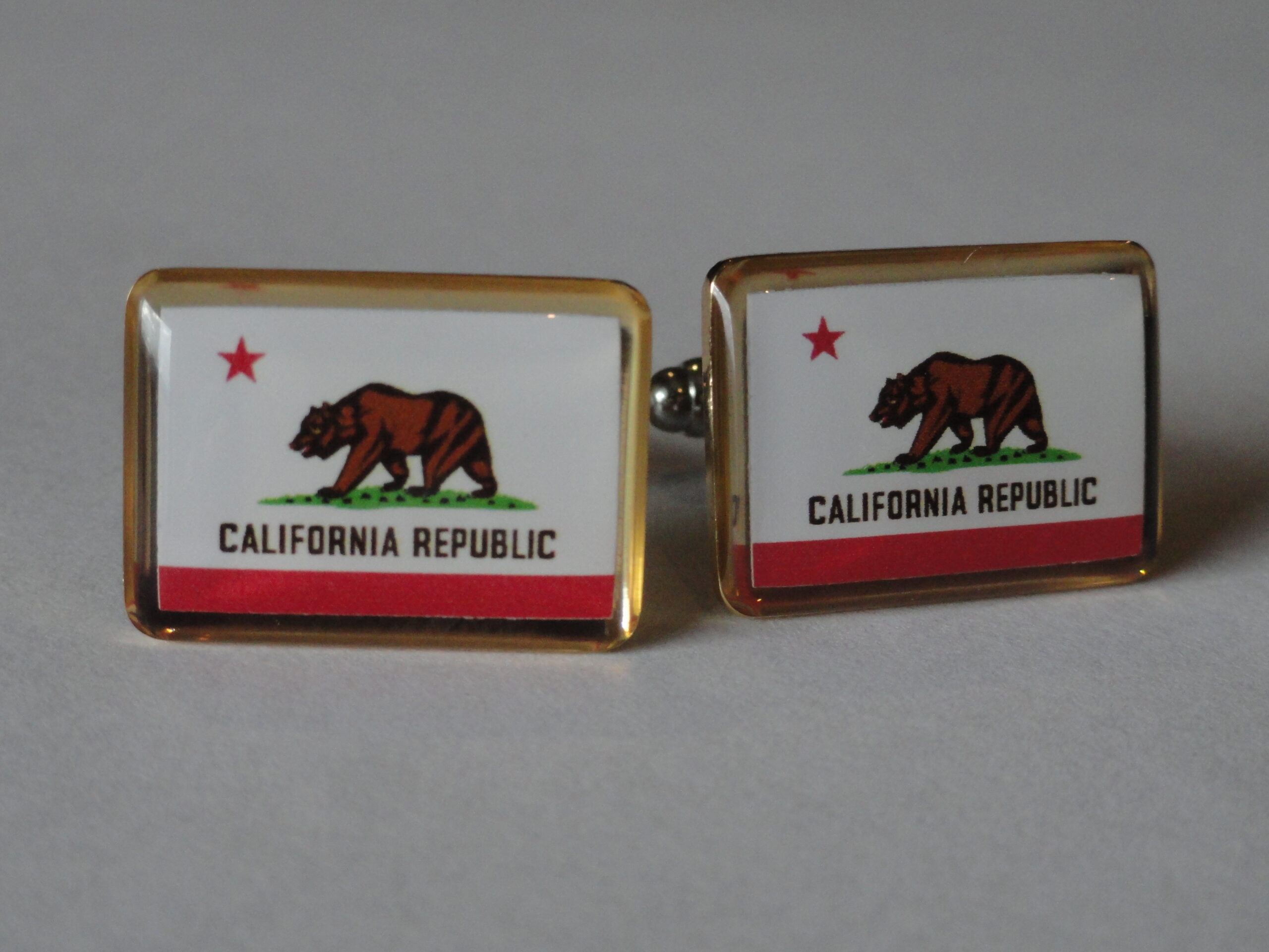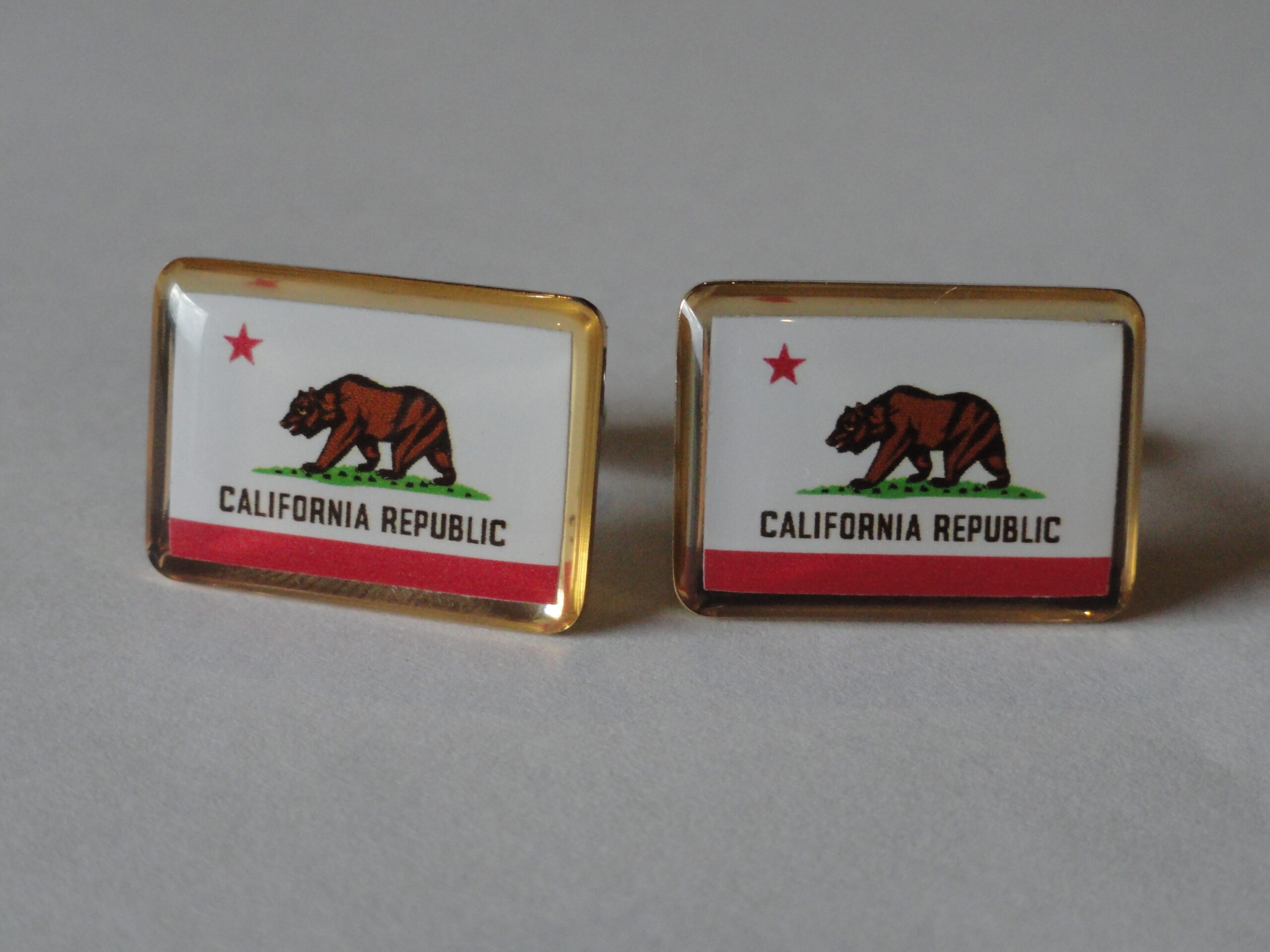 Hey folks, so I now make a line of all the state flags. Here we see the flag of the state of California. This pair is perfect for anyone from California or who has visited and fallen in love with it, or just things the flag looks cool. Perfect for formal settings or just around the office. I think this pair would also be quite fitting for government employees.