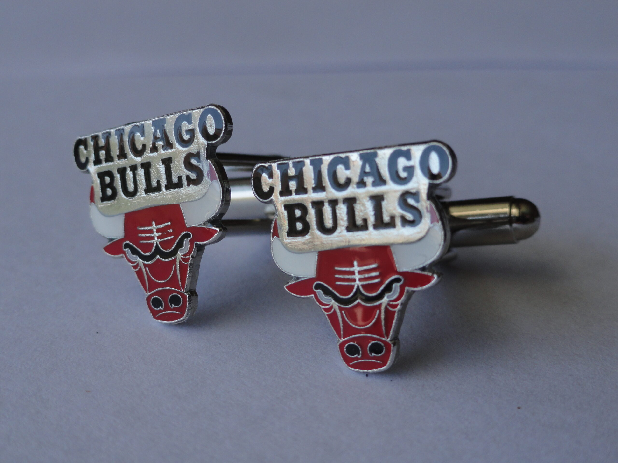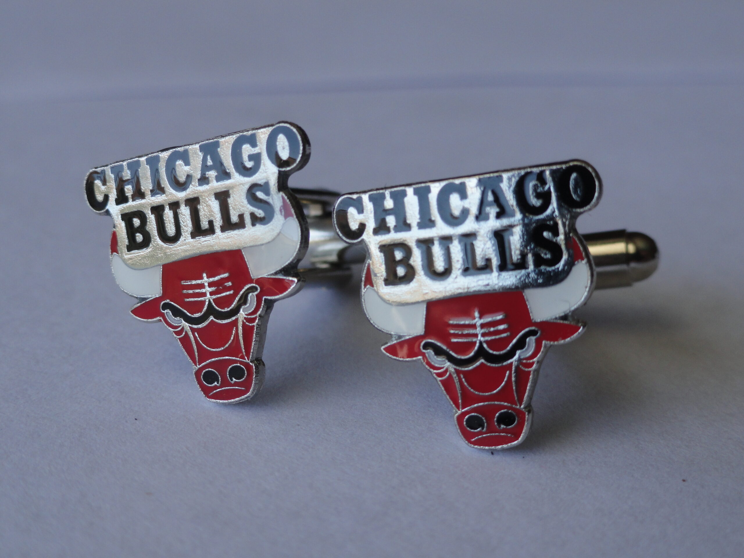 Cufflinks of the logo of the Chicago Bulls, basically one of the better teams in the NBA. They are past winners of the National Basketball Association Finals and the Larry O’Brien Trophy. This pair is perfect for all you Bulls fans, or for anyone who just loves basketball! Maybe a Bull is your favorite player? Show your support by wearing this pair to your next event, next basketball game, or just at work!
