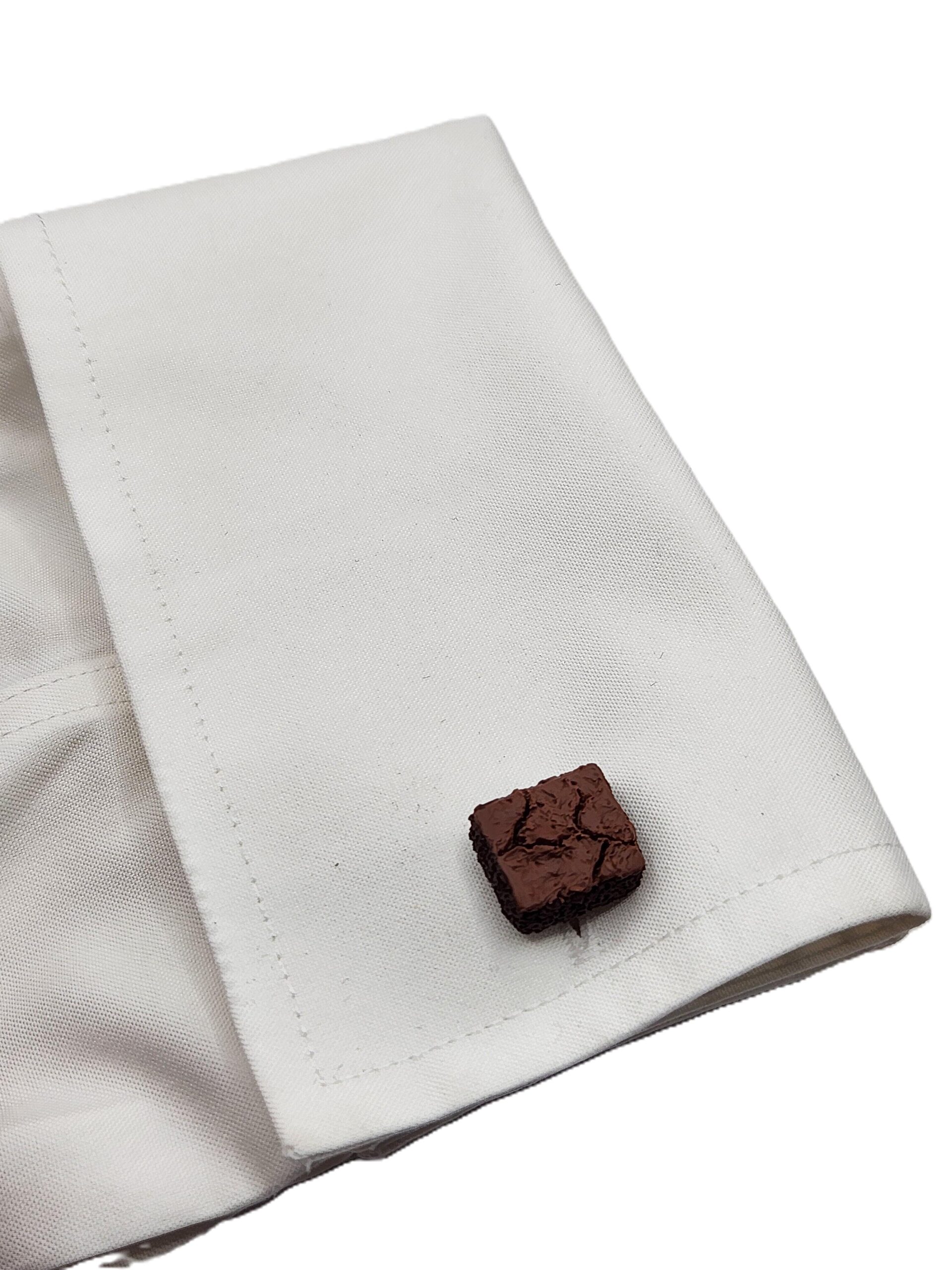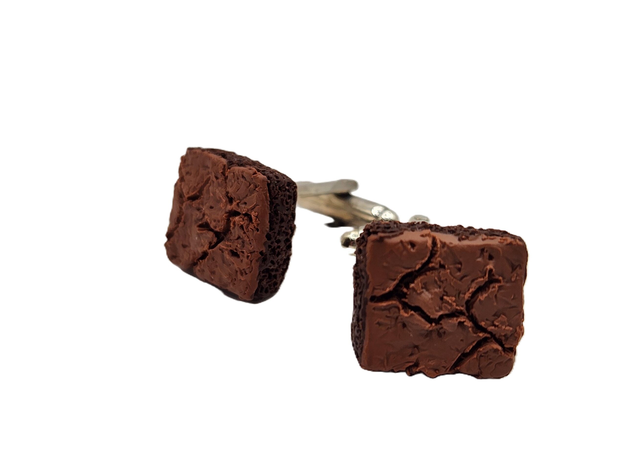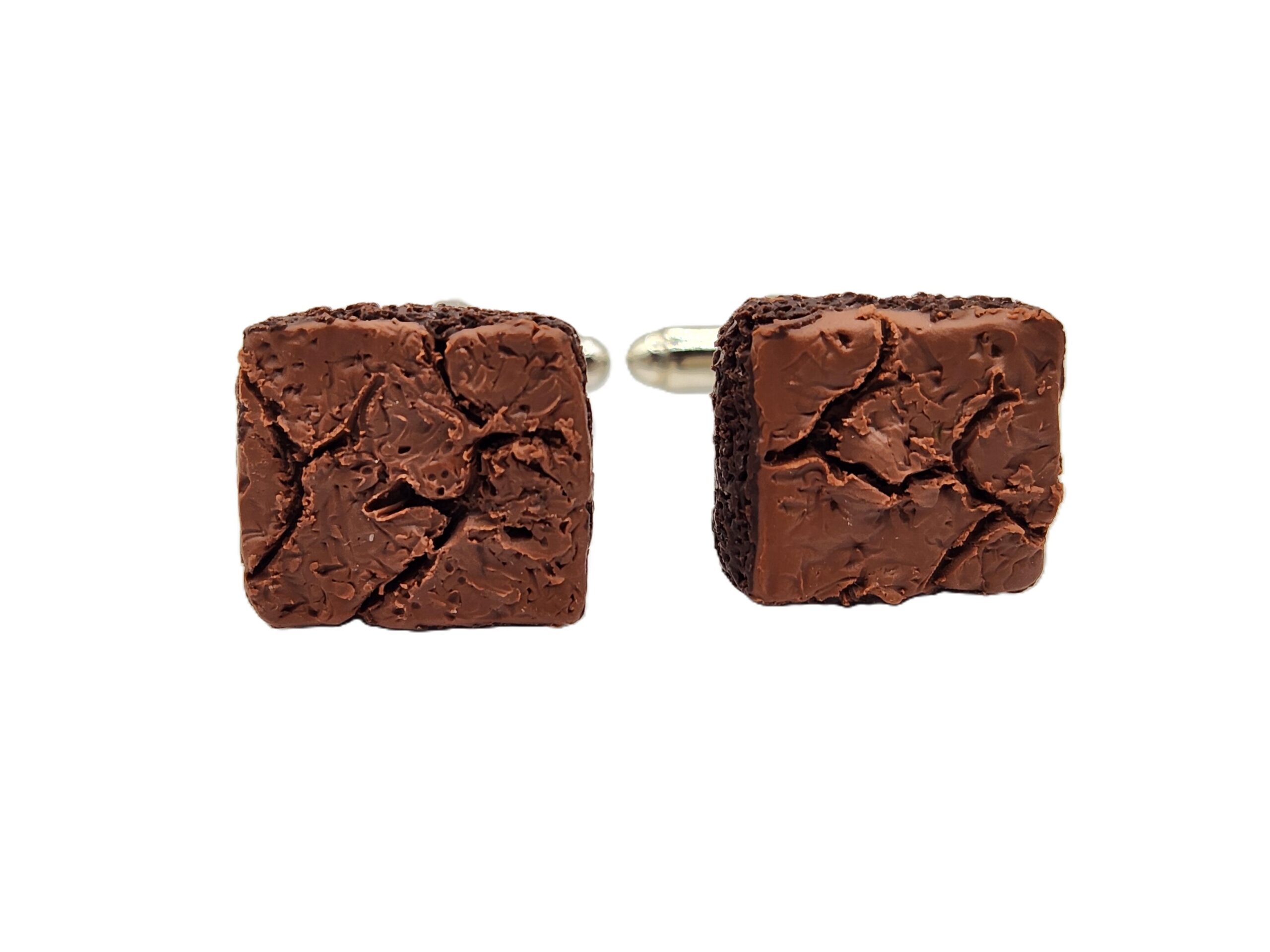 Wow! Don’t you just love these? A great pair for you or for some guy that loves brownies (which is… every man that I know of). Feature two little fudge brownies or slices of cake. The bottom portion depicts the sponge cake or brownie base with its crumbable and airy texture, though these are made out of ceramic and so will not crumb on you. The top is shows the traditional cracked texture of a brownie but also looks like frosting if you prefer to think of them as cake slices.