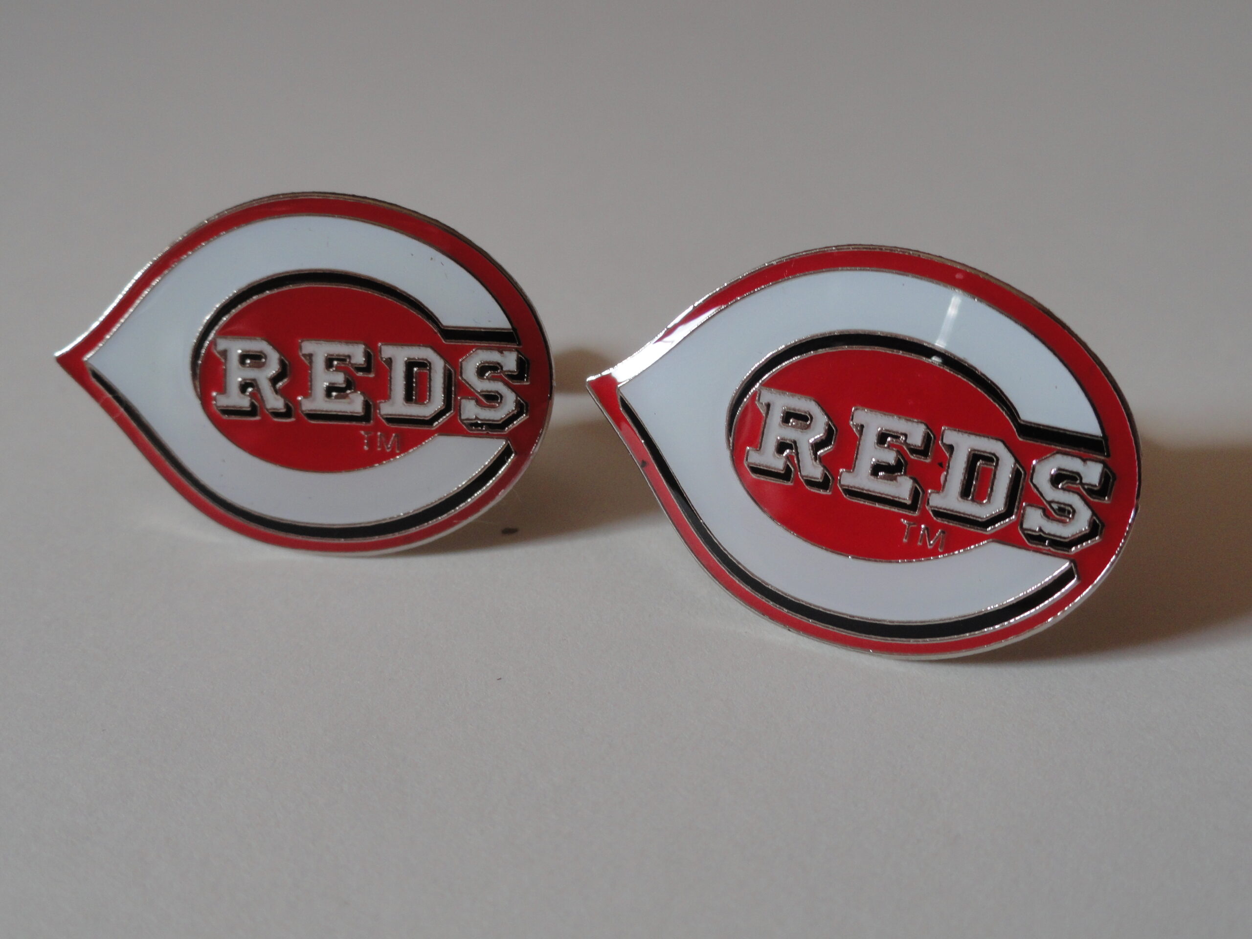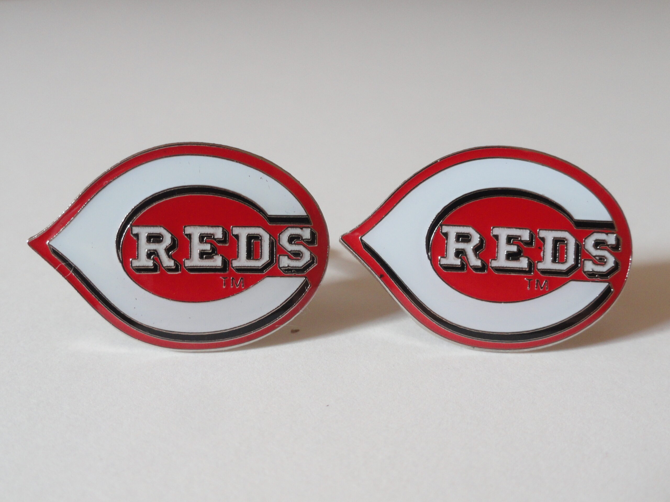 The Cincinnati Reds, one of the scrappy underdog teams in the MLB, rivals of the Pirates, Indians and Cubs, former World Series victors and a team with a strong, loyal cult following!!! If you love baseball and the Reds, this is the perfect pair for you. Features the logo of the team in beautifully polished enamel. The details are highly-rendered and there is silver trim. Looks awesome on a white shirt, around the office or at a wedding.