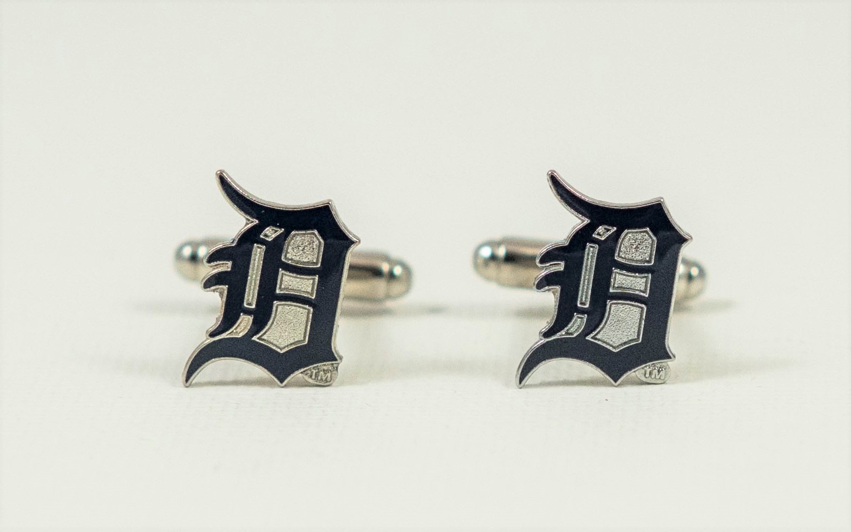 Detroit Tigers, one of the best teams in the MLB, a huge rival for the Indians and Twins, former World Series victors and a team with a strong, loyal cult following!!! If you love baseball and the Tigers, this is the perfect pair for you. Features the logo of the team in beautifully polished enamel. The details are highly-rendered and there is silver trim. Looks awesome on a white shirt, around the office or at a wedding.