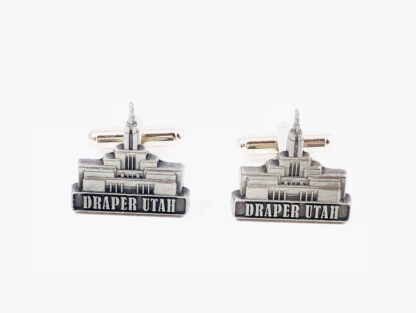 Antiqued silver-plated cuff links displaying the Latter-Day Saint Draper Temple, in Draper, Utah. Perfect for students at BYU, LDSBC, The University of Utah, Utahn natives or perhaps just people who have visited Draper and loved it. Also great for people from Draper or who have personal or family history attachments to the temple. The details are very clear. Would be a perfect groom or groomsmen gift for anyone holding their wedding at the temple.