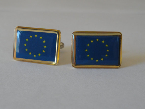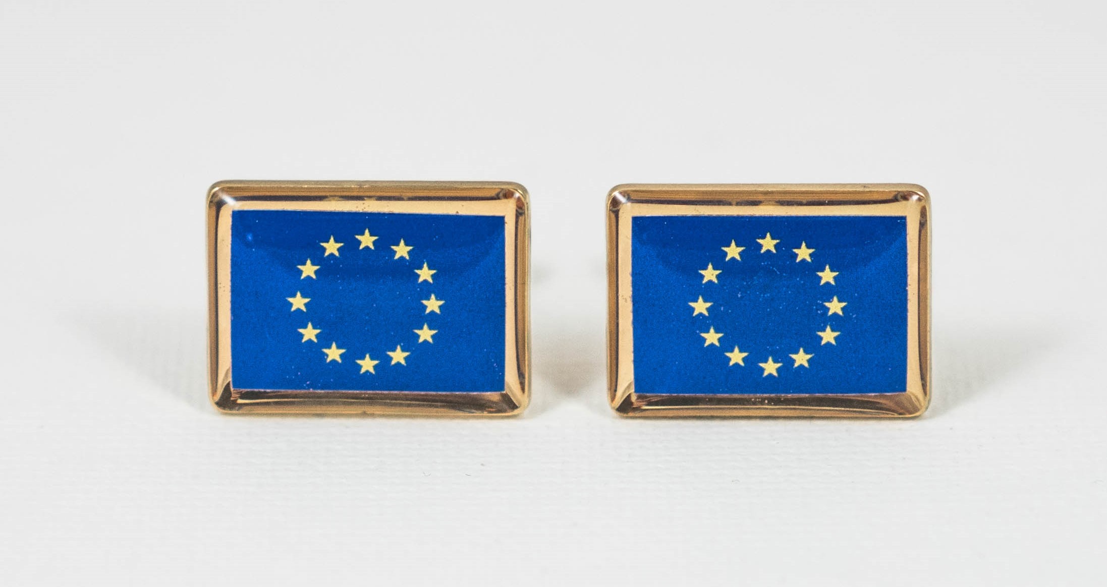 Flag of the EU turned into a great new pair of cufflinks. It features the deep navy blue background on top of which is the circle of 16 stars. This is perfect for anyone who loves Europe or is interested in international or European politics. Perfect for folks working in government. Also, if you or a friend happens to be avid supporter of a united Europe, once again this is your pair! Good for social and political functions.