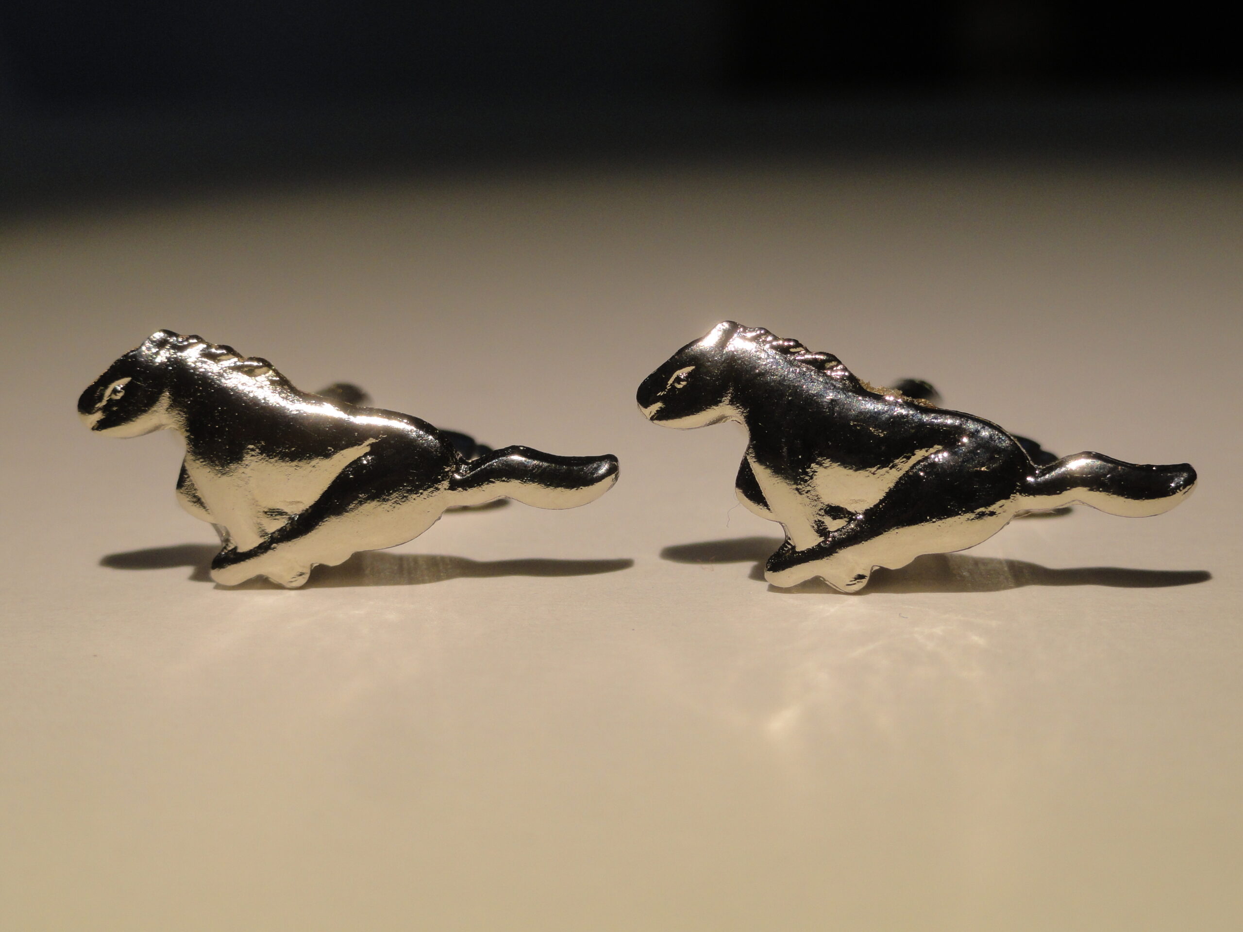 Here we have a great pair for any guy who loves cars, especially Ford Mustangs. Perfect for car fans, Ford truck fans, sports car fans, muscle car fans, mechanics, car historians, body shop workers, detailers or Ford employees! They show the Ford Mustang logo, which is a silver mustang galloping at a fast pace. This pair is an excellent choice for any sort of social or company function where you can look classy, but unique and show off your personality at the same time!