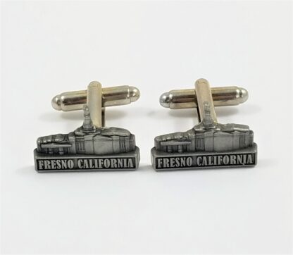 Antiqued-silver cuff links displaying the Latter-Day Saint temple in Fresno, California. Perfect for students and LDS people from that area or who got married there. The details are very clear. Would be a perfect groom or groomsmen gift for anyone holding their wedding at the Fresno temple.