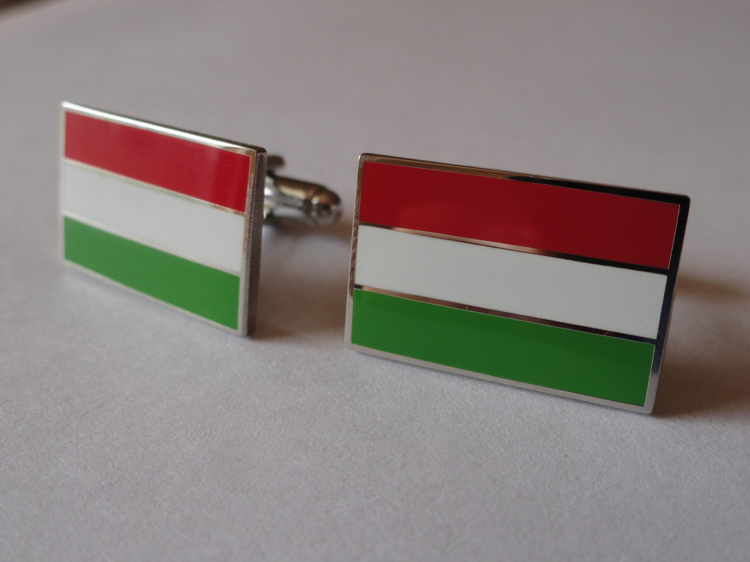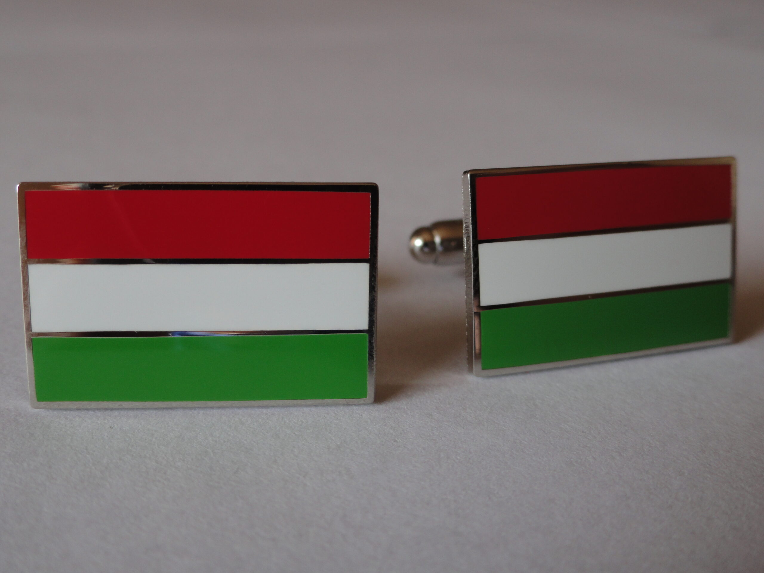 The flag of Hungary turned into a brand new and unique pair of cufflinks. Perfect for people from Hungary, have Hungarian heritage, have worked in Hungary, or who have visited and fallen in love with it. Features the red, white and green stripes. Outstanding quality with a glossy finish. This pair really is beautiful and would work well in formal settings. Super unique and cultured pair of cufflinks, right here!