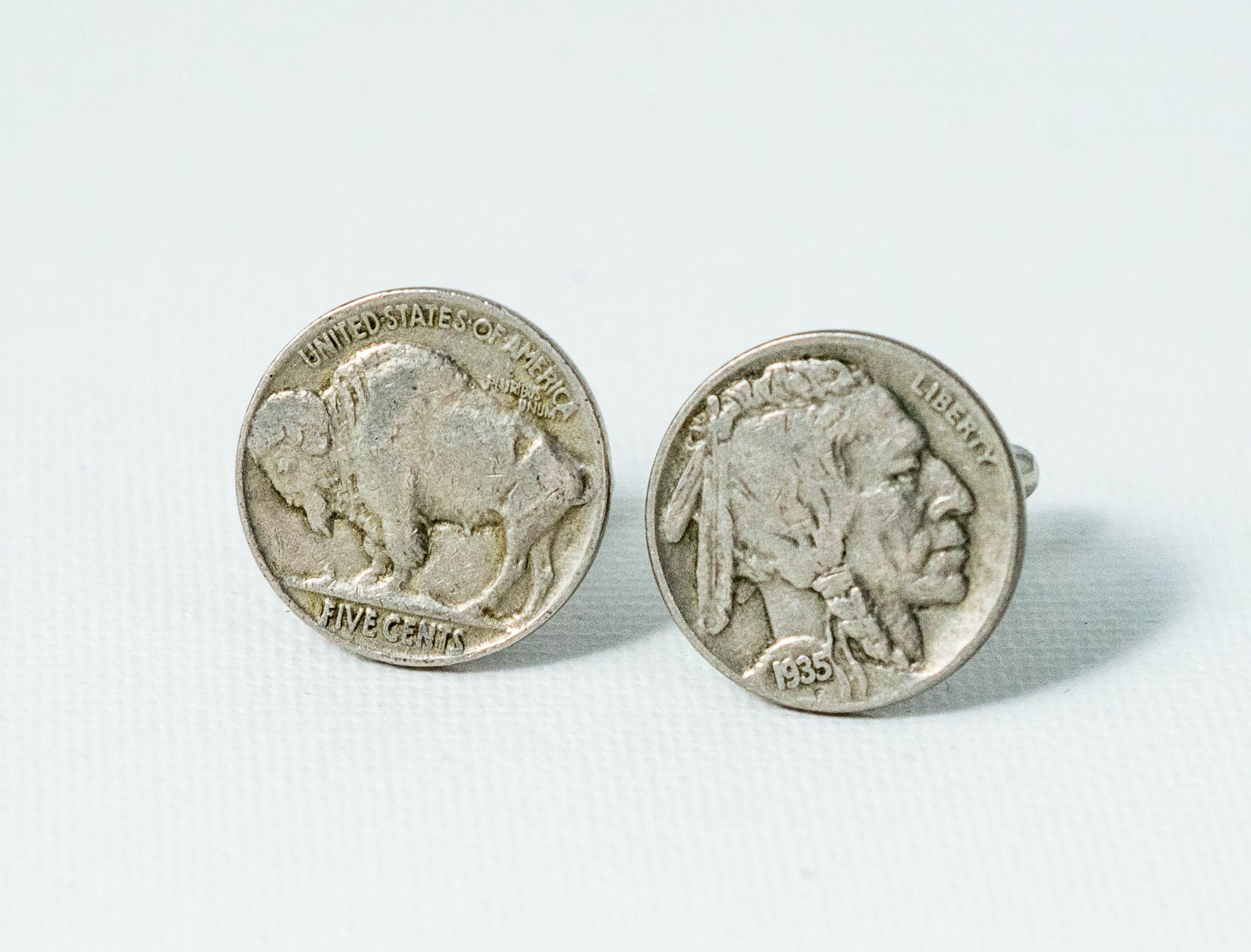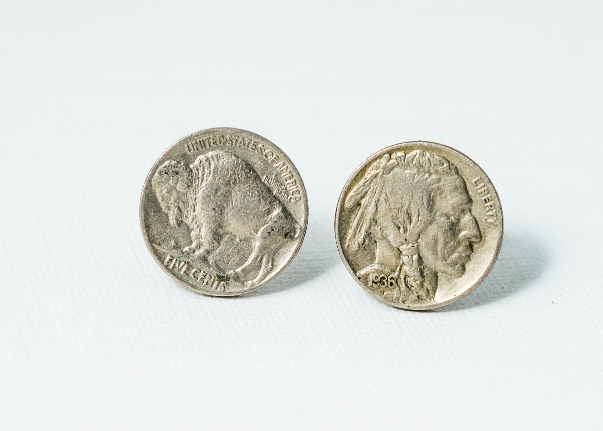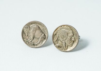 Indian Head and Buffalo Nickel Coin Cufflinks, Lapel Pin, Tie Bar and Earrings