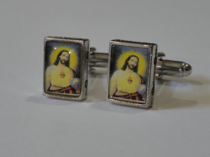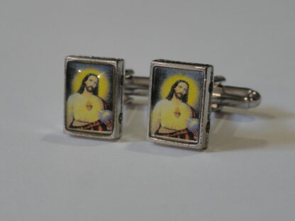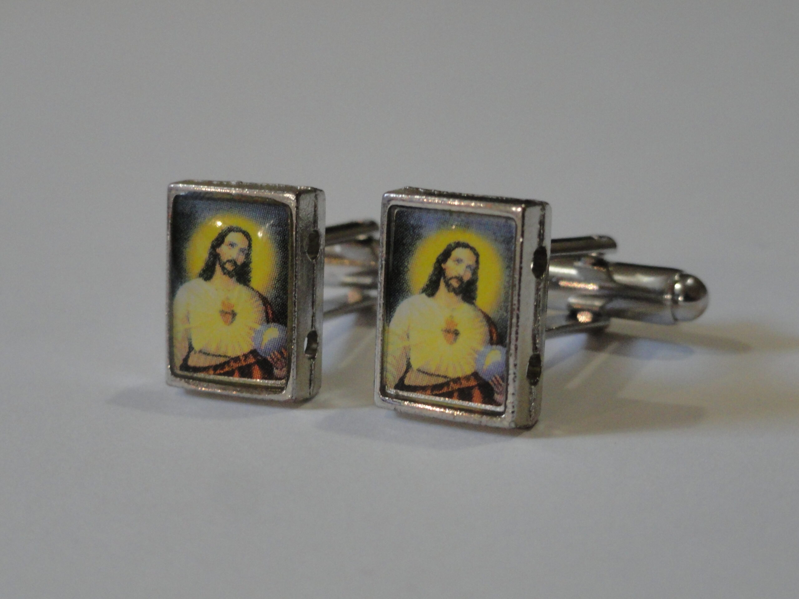 Here we have an addition to my new line of religious-themed cufflinks. This particular pair will appeal to many Christian people, particularly those of the Catholic and Protestant faiths, but also to many other Orthodox and Evangelical members as well. Great for anyone who might just be a fan of Western, Christian or Catholic art and iconography. Made to represent a Catholic painting of Jesus in a cathedral.