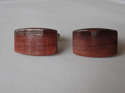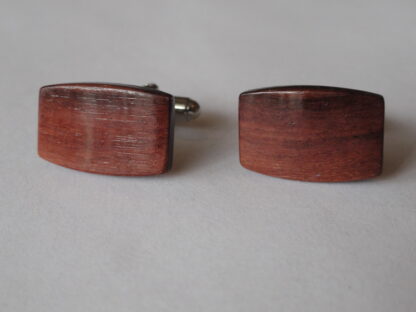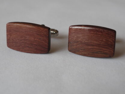 These cufflinks are made of highly polished wood from the Katalox or Mexican Ebony tree of Mexico and Central America. Latin name is Swartzia cubensis. The grain and features are captured very well. Katalox is a beautifully grained, exotic hardwood. All of this marbling, grain and striations that you see is 100% natural. The wood is a dark brown with notes of purple. The wood naturally grows like this. I love wearing these ones because they look great without being over the top or gaudy.