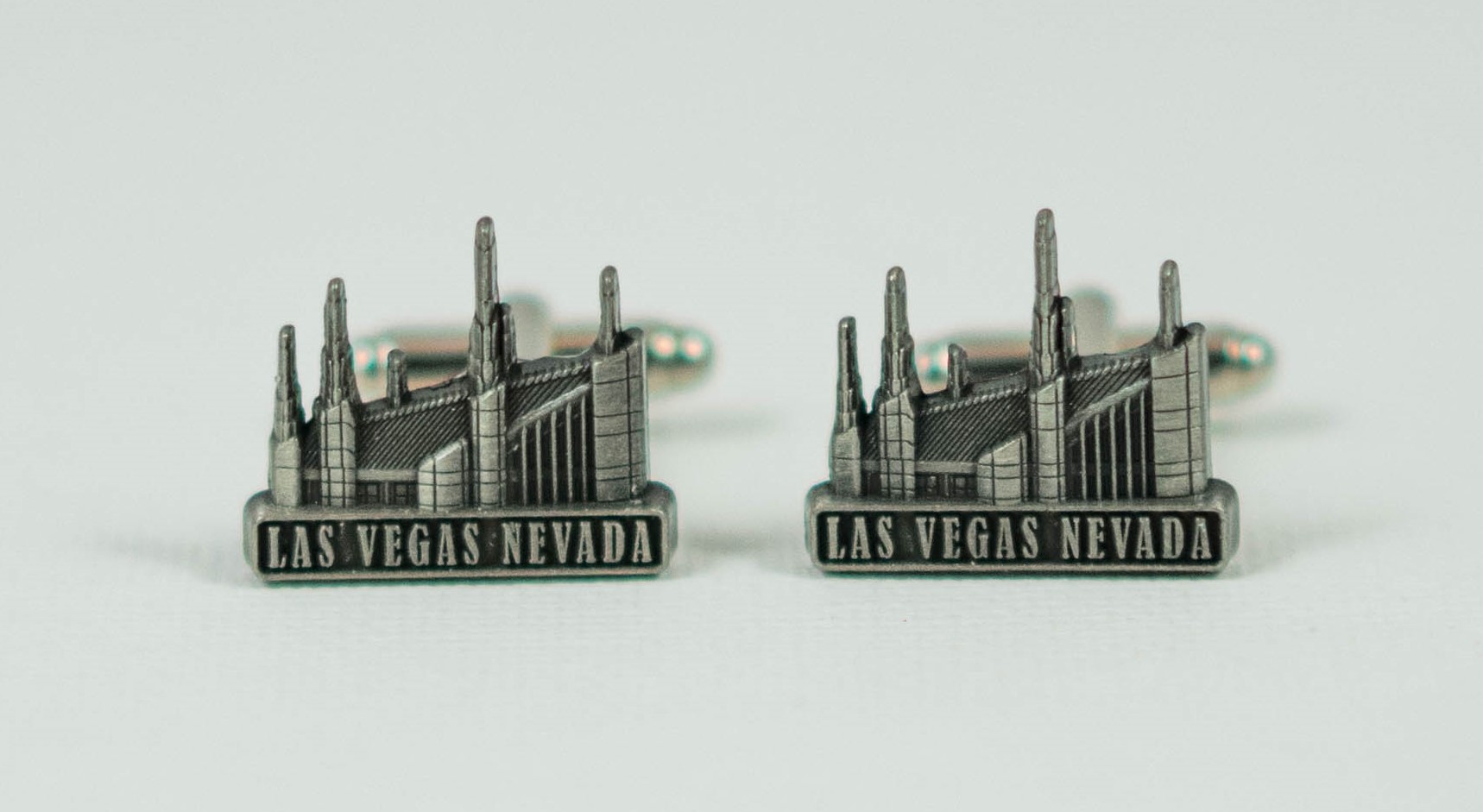 Antique silver cuff links displaying the Latter-Day Saint Las Vegas Temple, in Las Vegas, Nevada. Perfect for LDS guys who are from Las Vegas or who got married there, or perhaps just people who have visited Las Vegas and loved it. The details are very clear. Would be a perfect groom or groomsmen gift for anyone holding their wedding at the Vegas Temple.