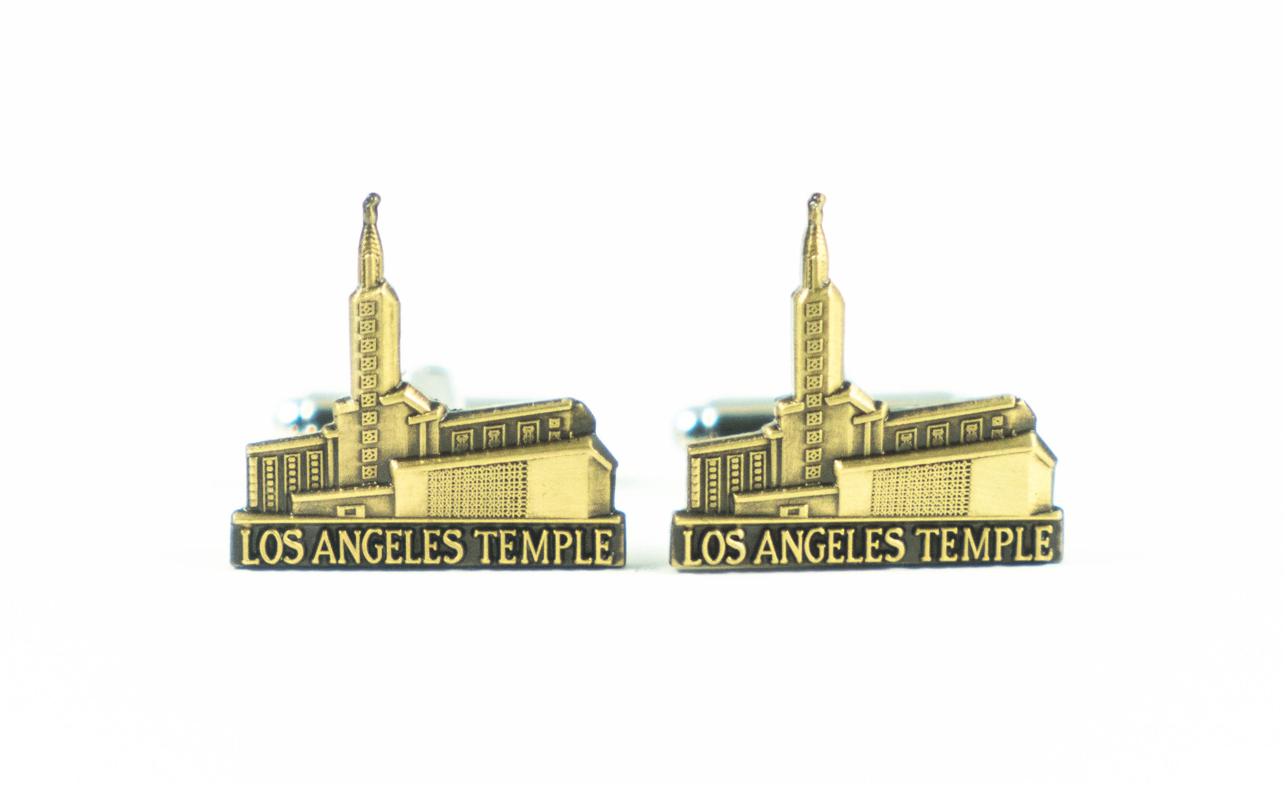 Brass-plated cuff links displaying the Latter-Day Saint LA Temple, in Los Angeles, California. Perfect for students and LDS people from that area or who got married there. The details are very clear. Would be a perfect groom or groomsmen gift for anyone holding their wedding at the LA Temple.