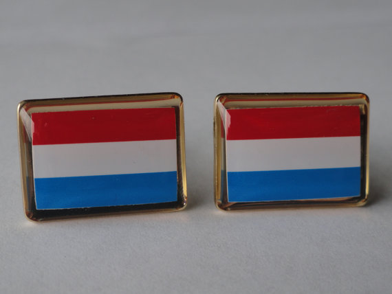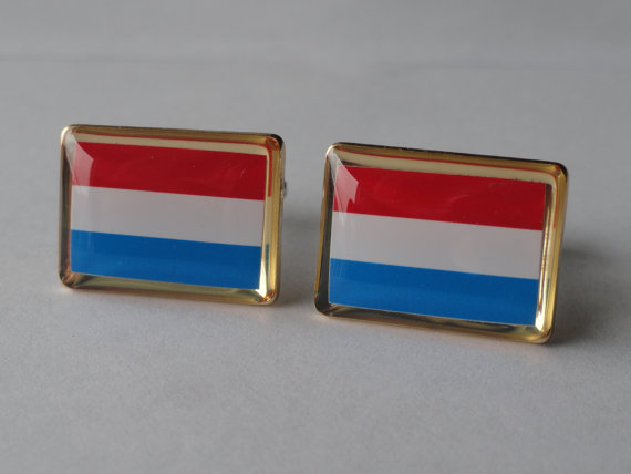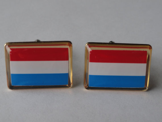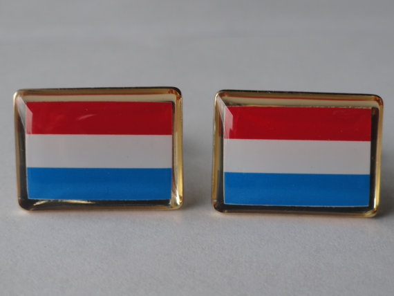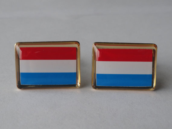 Hey everyone! These are a pair of handmade, Luxembourgish flag cufflinks. They are enameled stainless steel with gold plated rims. This pair is perfect for formal settings where you want to show your character without being ridiculously over the top. Be tame with the cufflinks as just simple horizontal lines and colors or being fiercely proud of your Luxembourgish heritage and show it to the whole world! Buy these for yourself or a loved one.