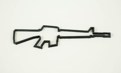 A nice gun cookie cutter for 2nd Amendment lovers. Shows the silhouette of an American M16 automatic rifle. This is one of the most widespread and manufactured rifles in the world.