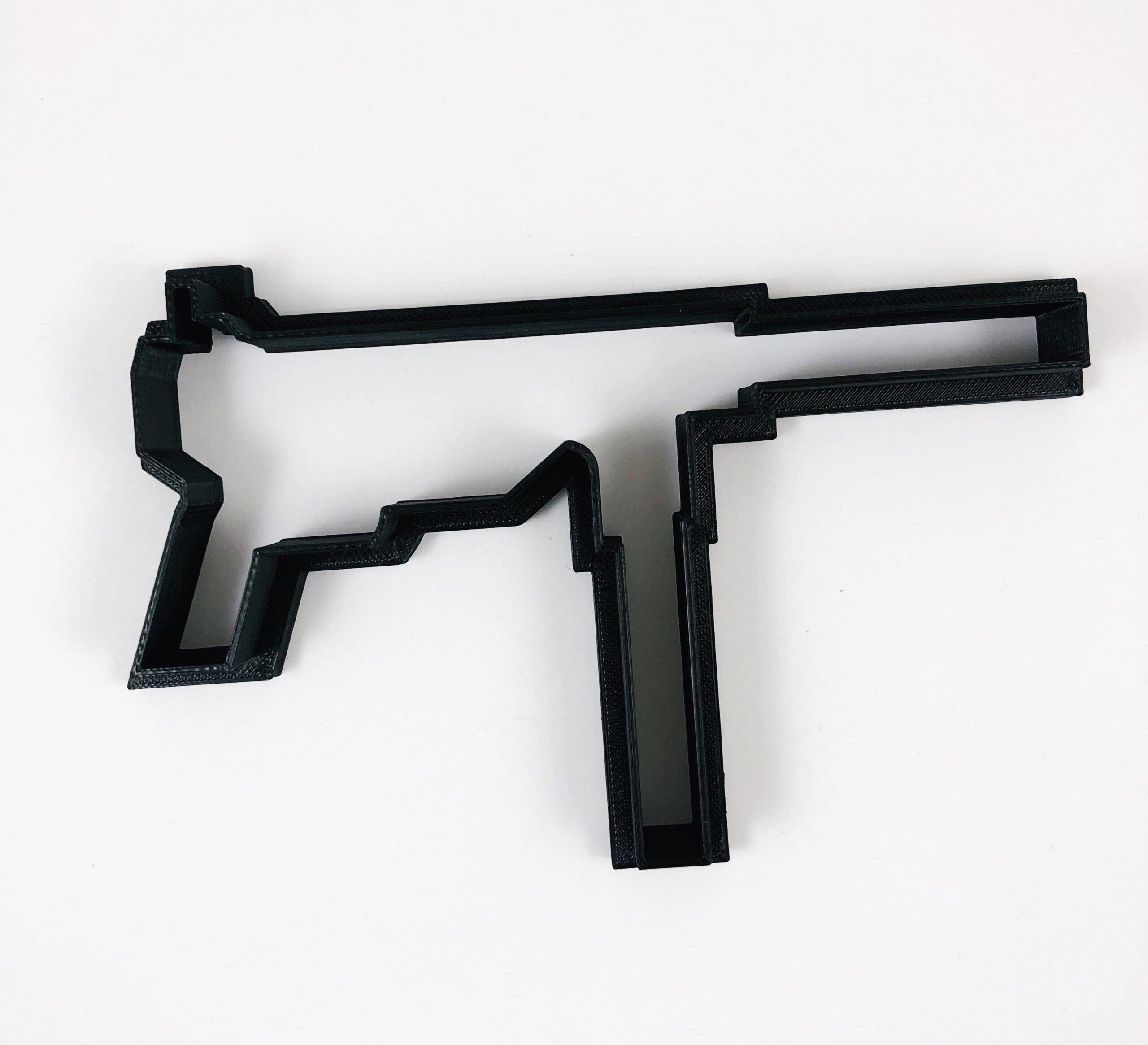 A nice gun cookie cutter for 2nd Amendment lovers. Shows the silhouette of an M3 submachine gun, a common rifle used by the Allies of WWII. This is the most widespread and manufactured rifle in the world.