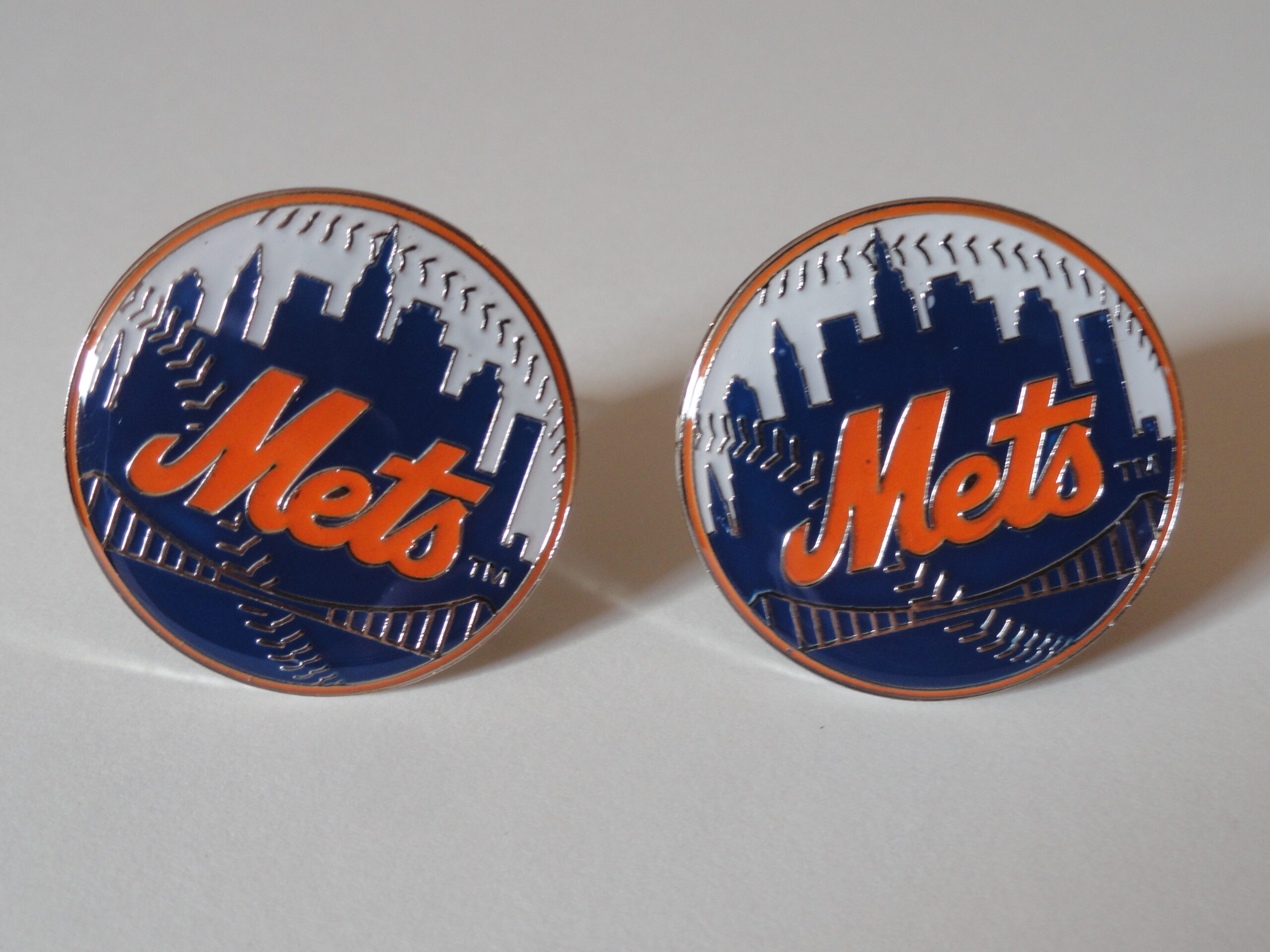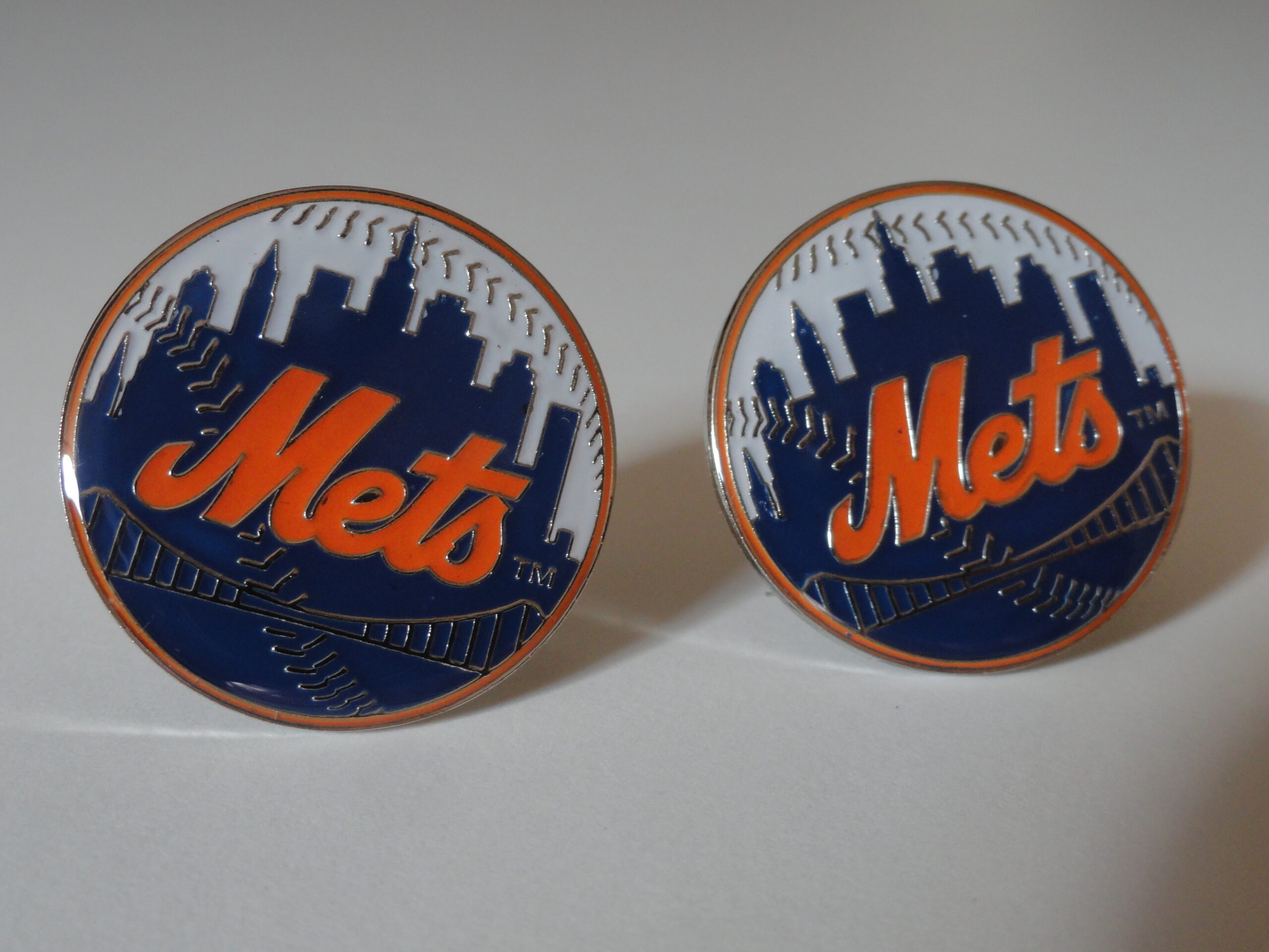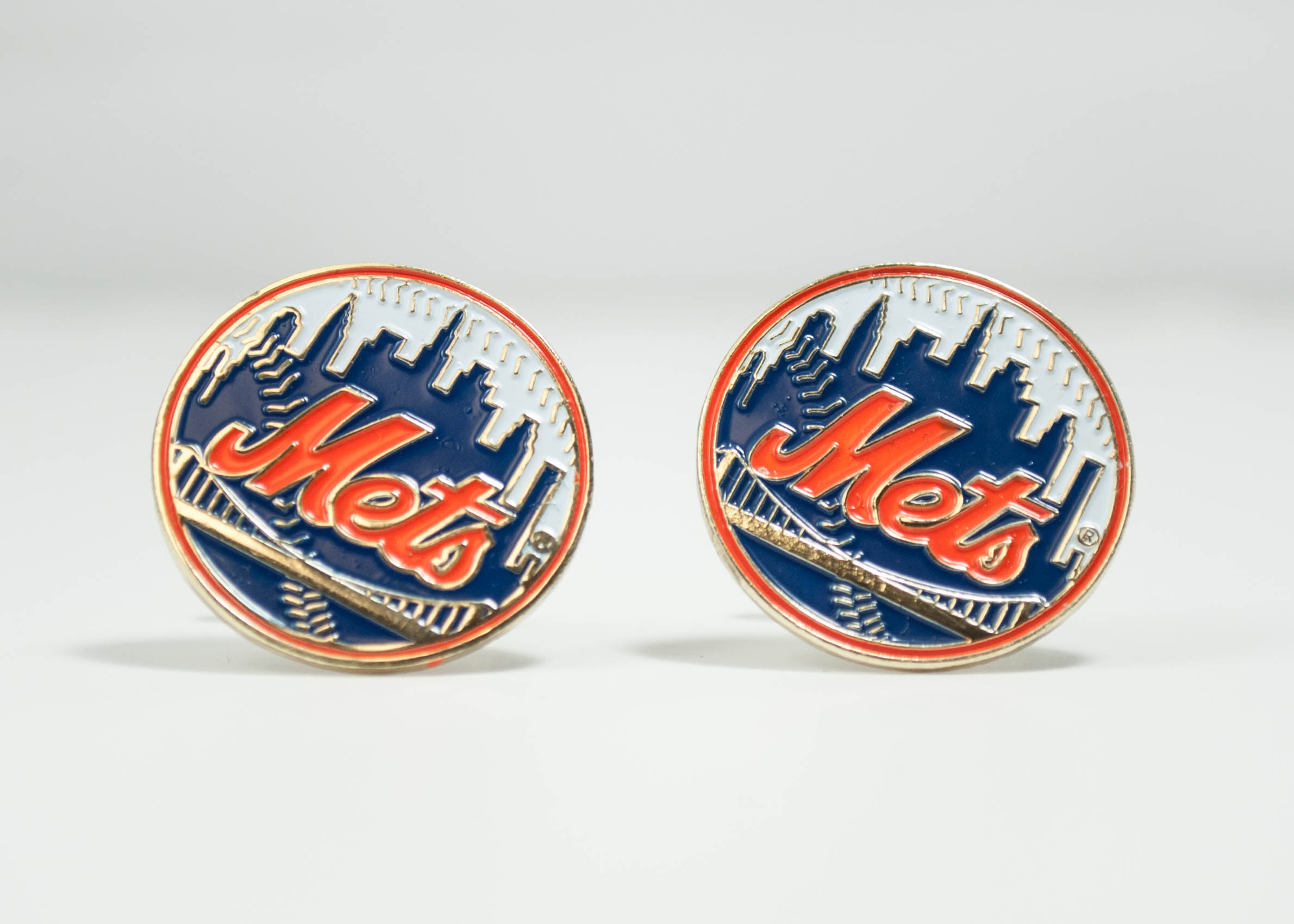 The Mets, one of the best teams in the MLB, a huge rival for the Yankees and Phillies, former World Series victors and a team with a strong, loyal cult following!!! If you love baseball and the Mets, this is the perfect pair for you. Features the logo of the team in beautifully polished enamel, which is the cursive word “Mets” in front of the New York City skyline on a baseball. The details are highly-rendered and there is silver trim. Looks awesome on a white shirt, around the office or at a wedding.