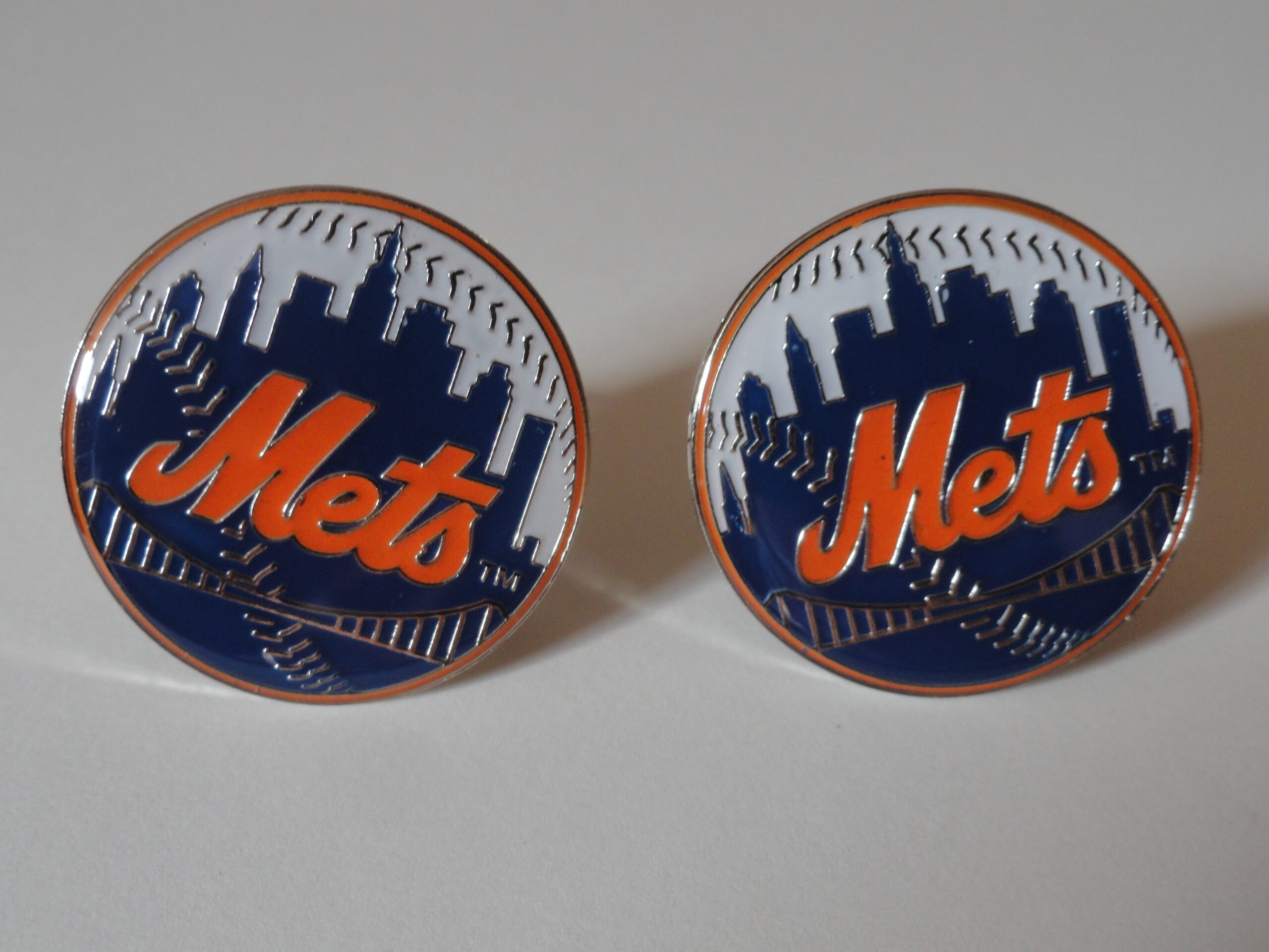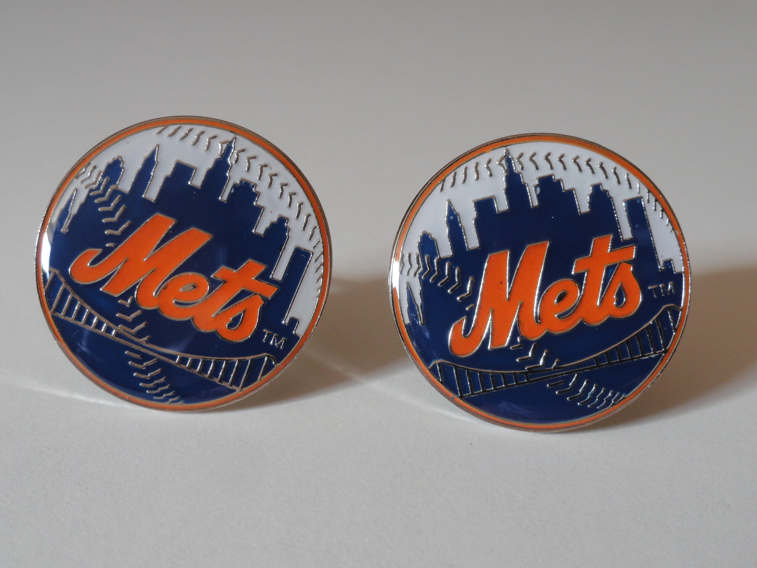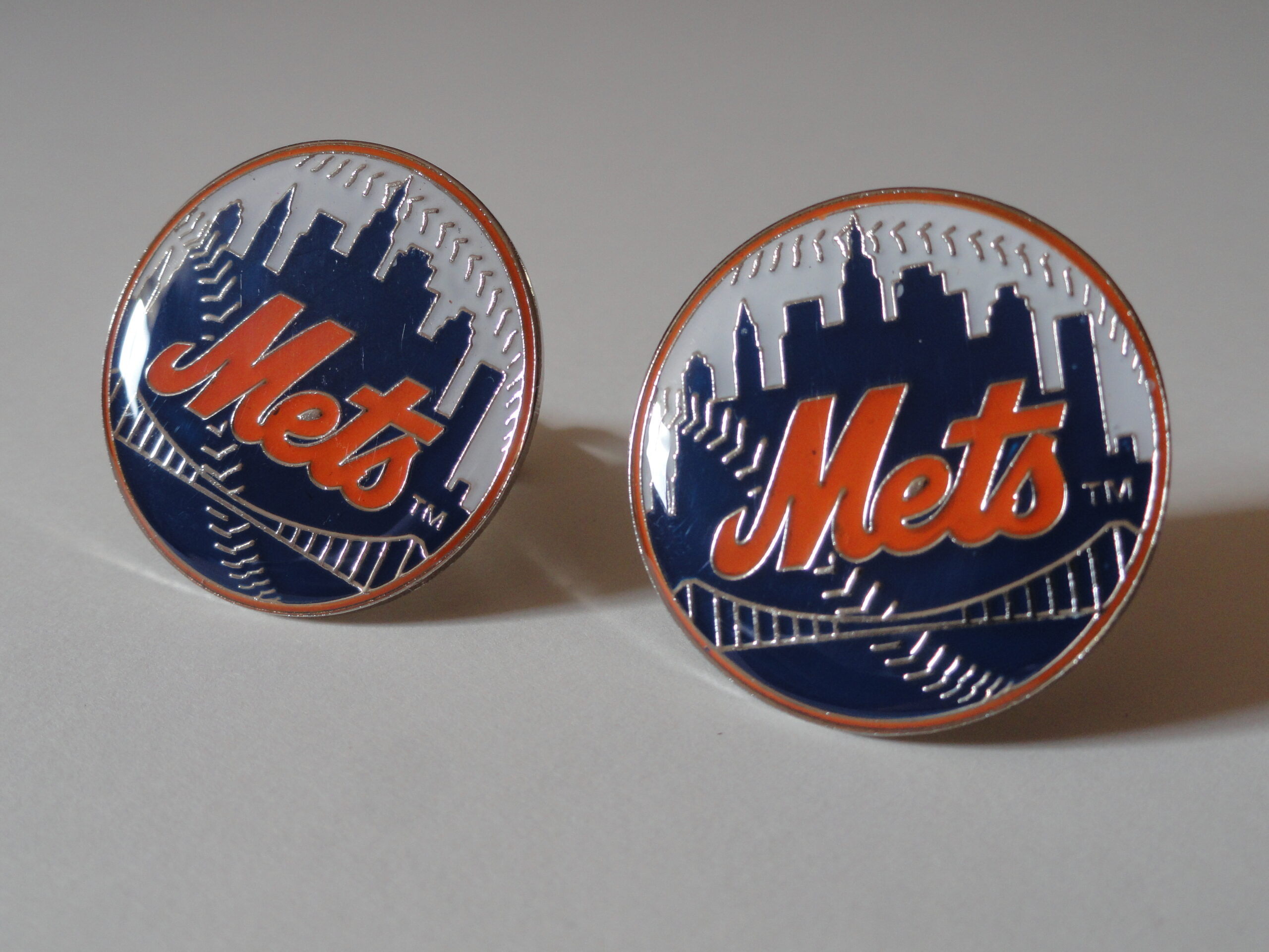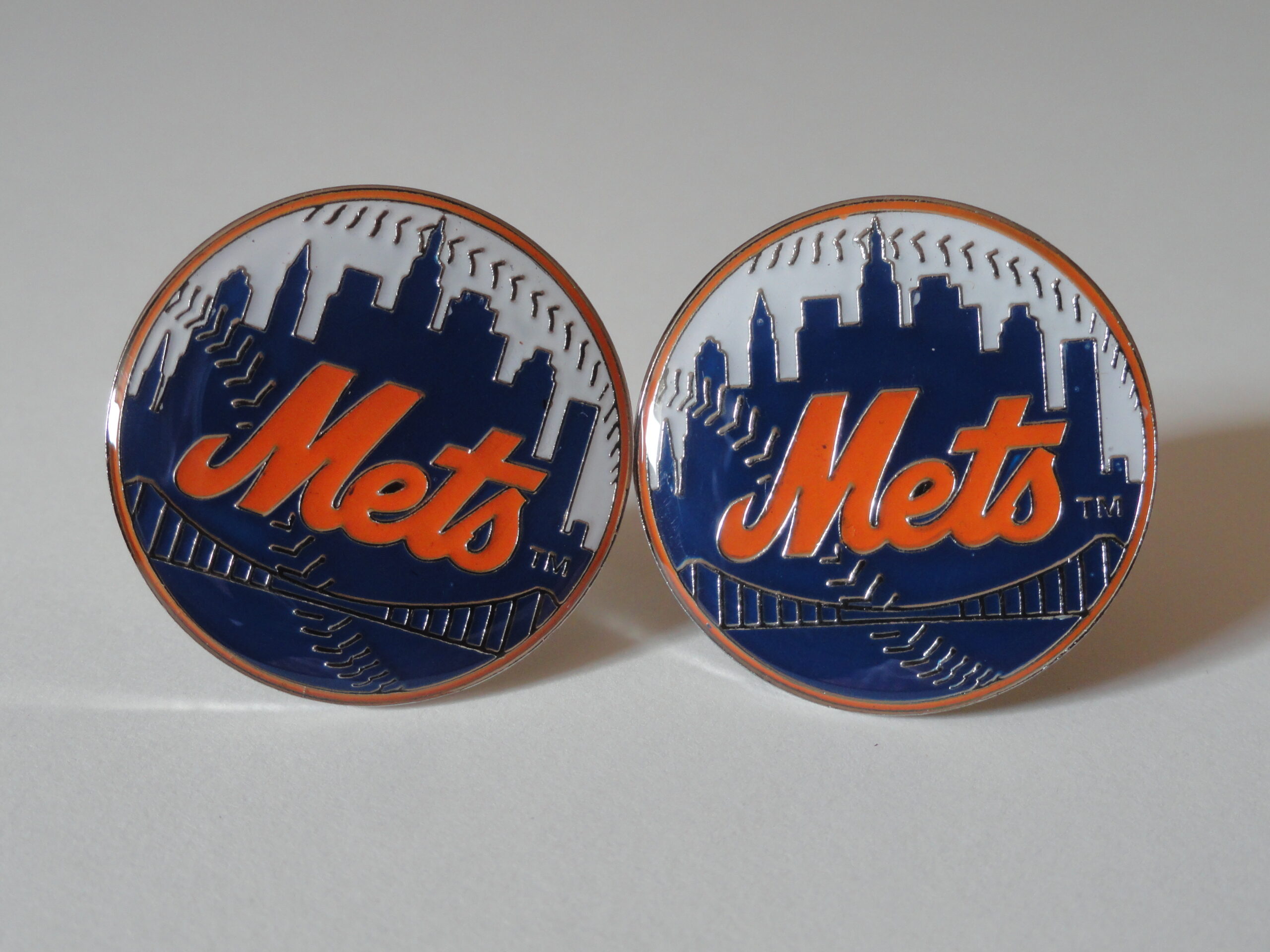 The Mets, one of the best teams in the MLB, a huge rival for the Yankees and Phillies, former World Series victors and a team with a strong, loyal cult following!!! If you love baseball and the Mets, this is the perfect pair for you. Features the logo of the team in beautifully polished enamel, which is the cursive word “Mets” in front of the New York City skyline on a baseball. The details are highly-rendered and there is silver trim. Looks awesome on a white shirt, around the office or at a wedding.