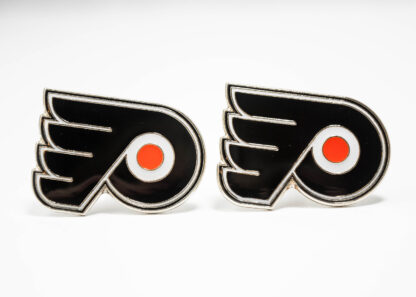 Cufflinks of the logo of the Philadelphia Flyers hockey team. This is an extremely good team in the NHL right now. Show your pride in your team by wearing this beautiful set. The logo is created using high-gloss enamel on stainless steel. The quality is excellent and will last you a long time. This pair is perfect for formal and less formal settings, or just something fun to wear at the office that will set you apart from the rest. Plus, if your boss loves the Flyers, this should help you land that raise…