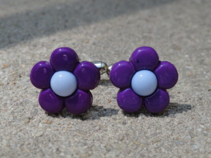 Purple and Blue Flower Cufflinks, Lapel Pin, Tie Bar and Earrings