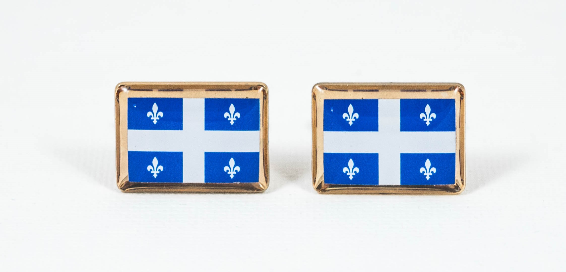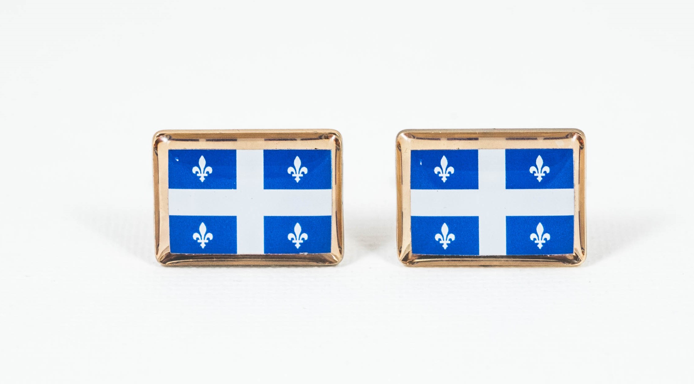These are cufflinks of the flag of Quebec. Show everyone your pride by sporting this pair. These enameled steel cufflinks look great in both formal and not-so-formal settings because they look elegant without being over the top. These are an excellent purchase for you if you are Canadian, from QC or for friends and family!