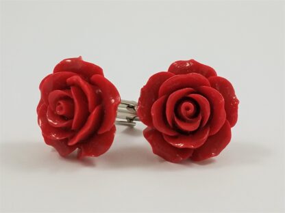 Cufflinks featuring a red colored rose as the face. Rich color to go well with dark or darker colored slacks, especially with a white shirt. These are elegant but not over-bearing. They will make you look way nice.
