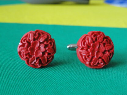Cufflinks featuring a red colored rose as the face. Rich color to go well with dark or darker colored slacks, especially with a white shirt. Maybe a red tie? Maybe red pants? Red shirt? Red lipstick… Anyways, these are elegant but not over-bearing. They will make you look way nice.
