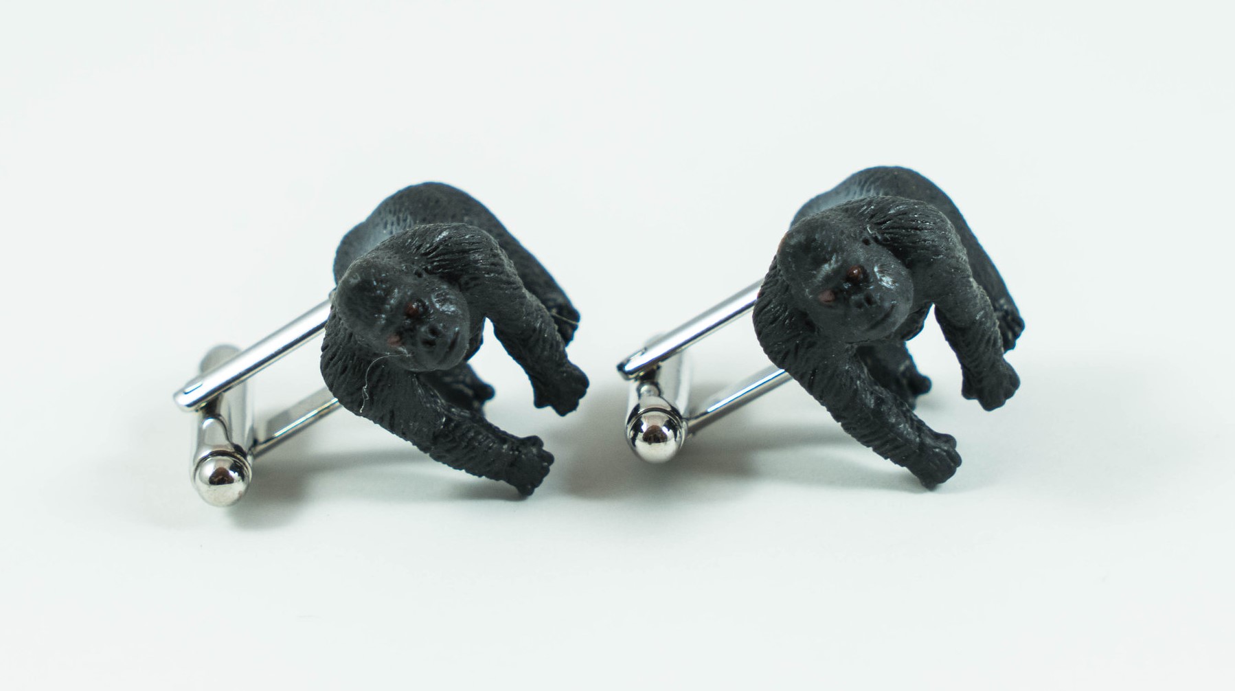 Cufflinks made from little gorillas. They are black, muscular and depict silverback males. Observe as the chicks swarm you.