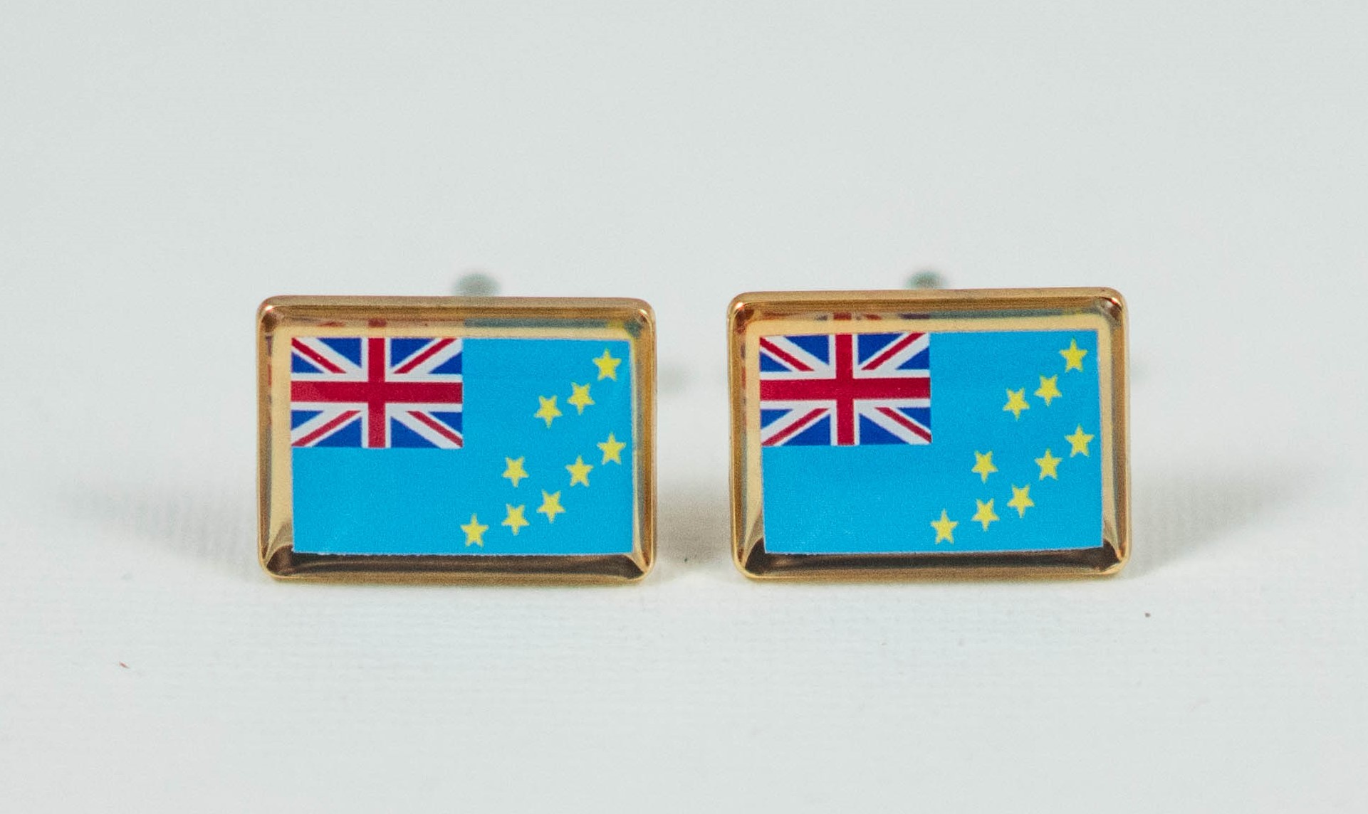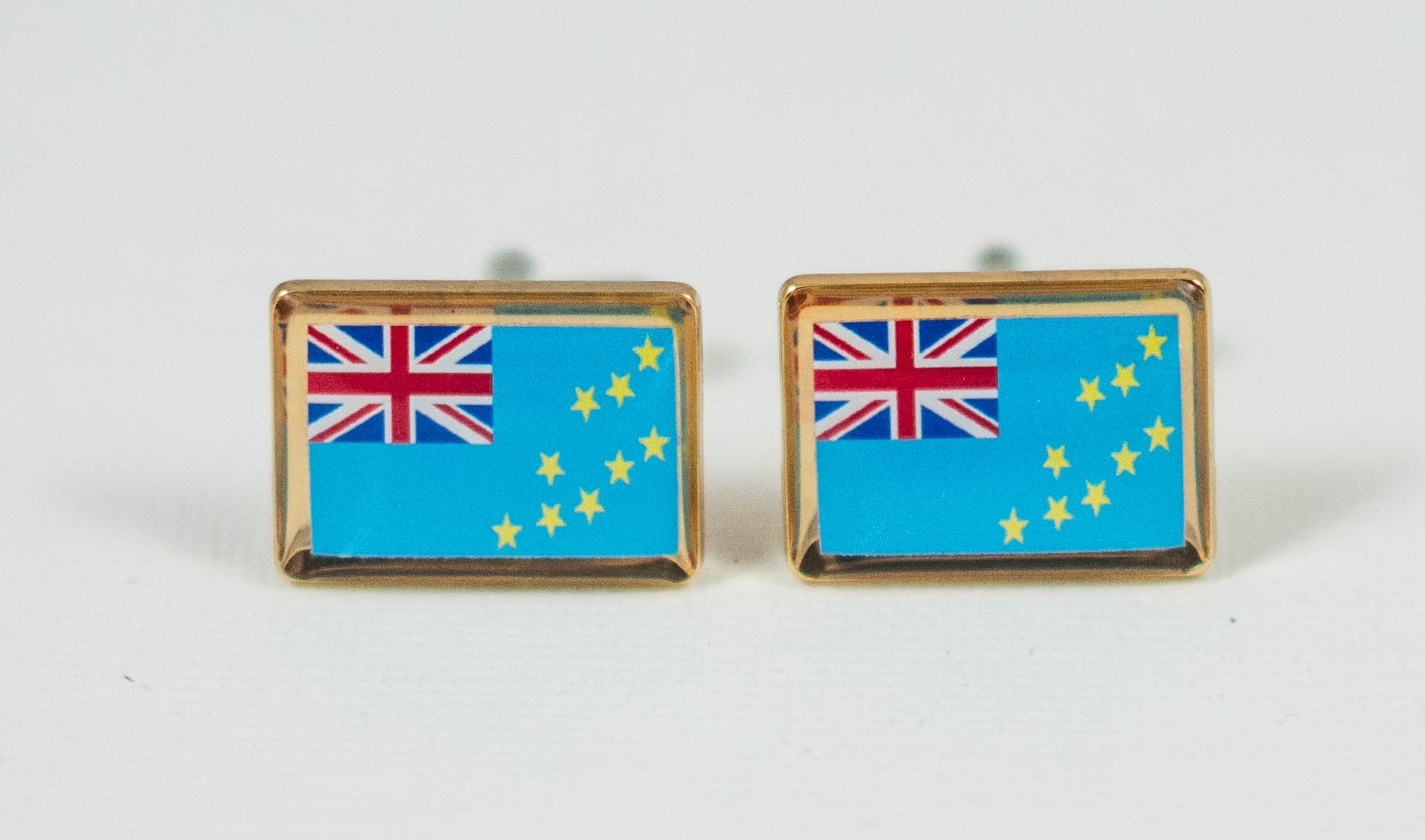 These are cufflinks of the flag of Tuvalu. These are great for anyone who is from Tuvalu, has family or friends from Tuvalu or just visited and fell in love with Tuvalu. I made these with my own hands and hope that you enjoy them. These are great and I love to get comments on them and all my other pairs when I wear them. These are high quality. The borders are a golden metallic tone.
