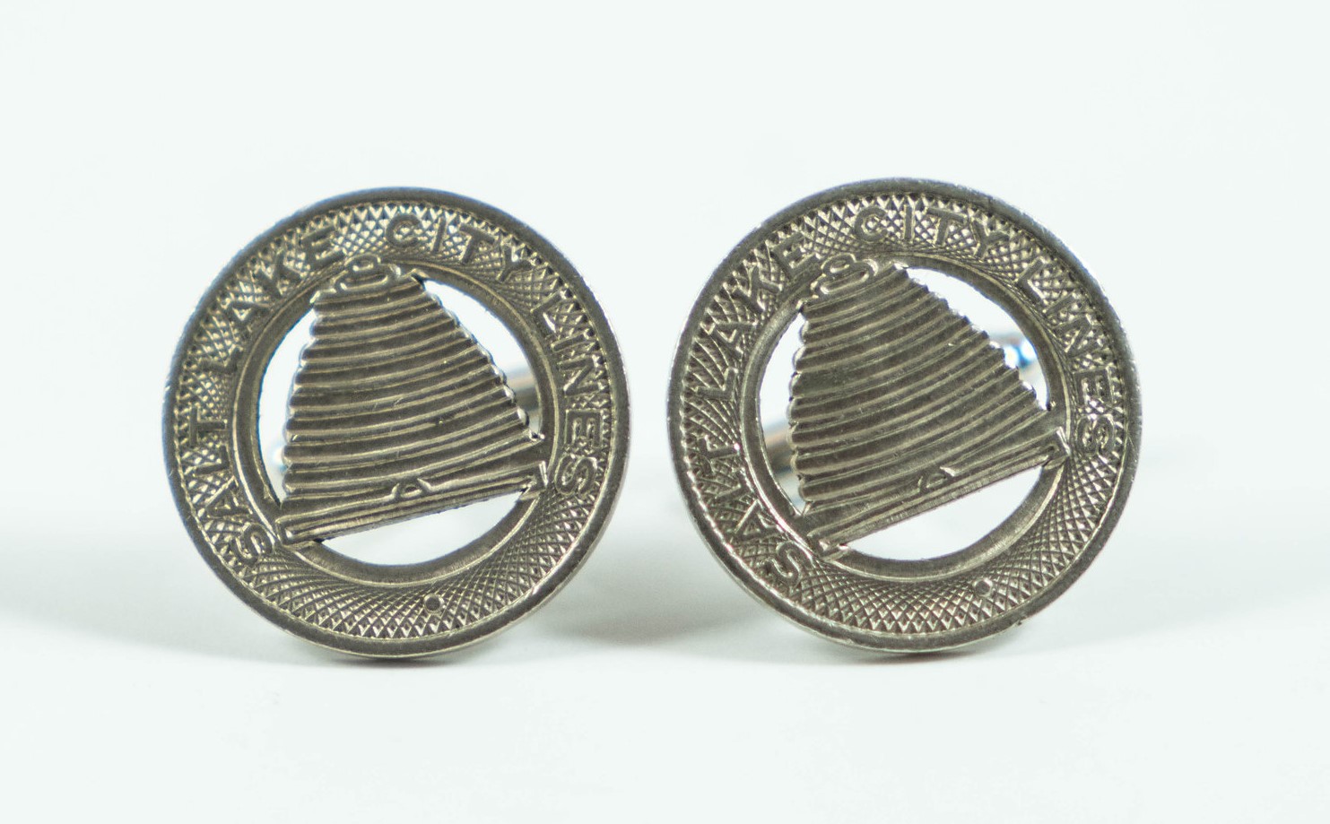 I found some cool vintage SLC Lines tokens and turned them into cufflinks. Salt Lake City had a trolley car or tram line back in the day, removed it, then several years after came to regret the decision, so they installed a new one! 🙂 These tokens are from the original line of street car trains. Now we just pay regular money, which is easier, but makes less cool cufflinks.